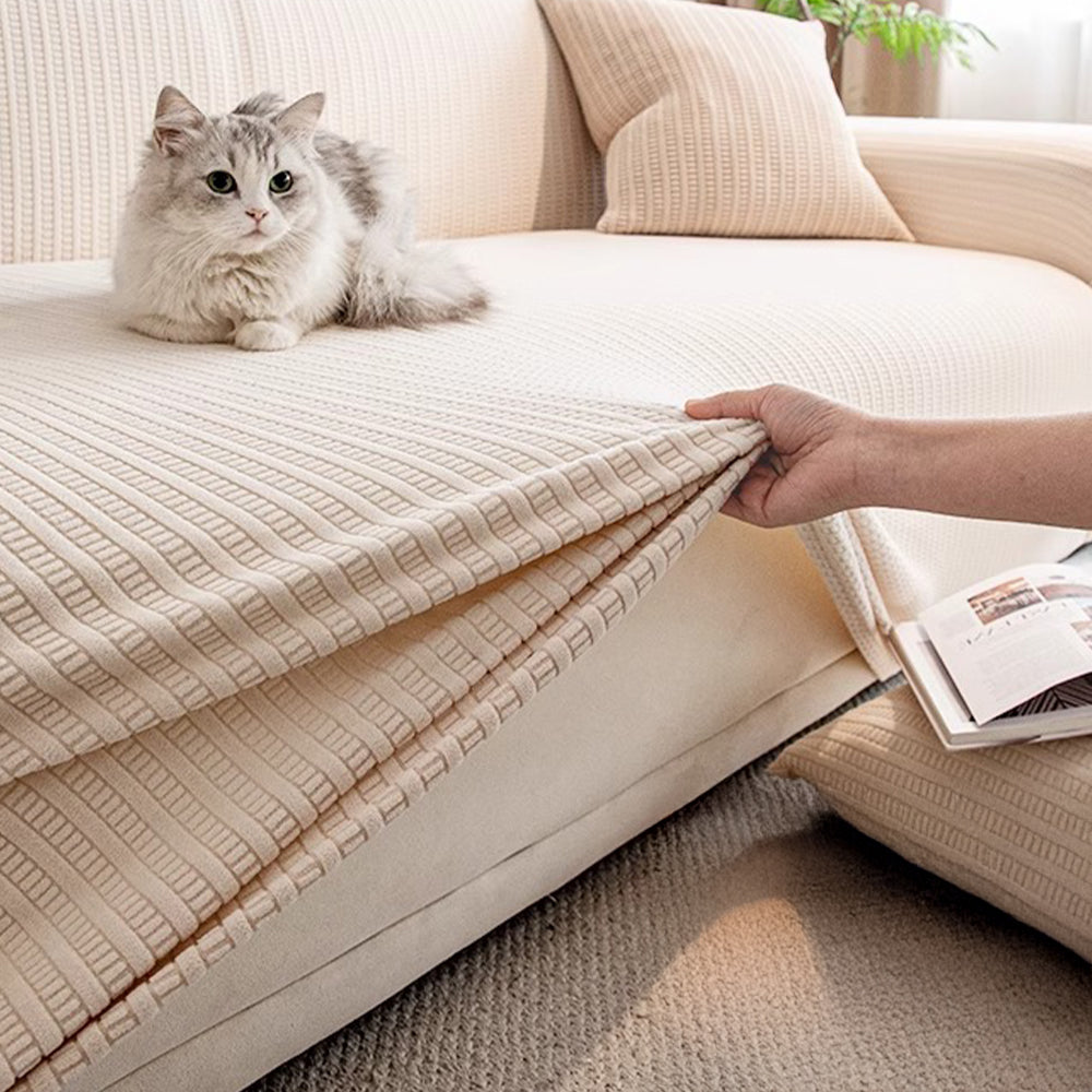 Vertical Stripe Corduroy Stretch Sofa Cover – Anti-Scratch, Full-Cover Pet Protector