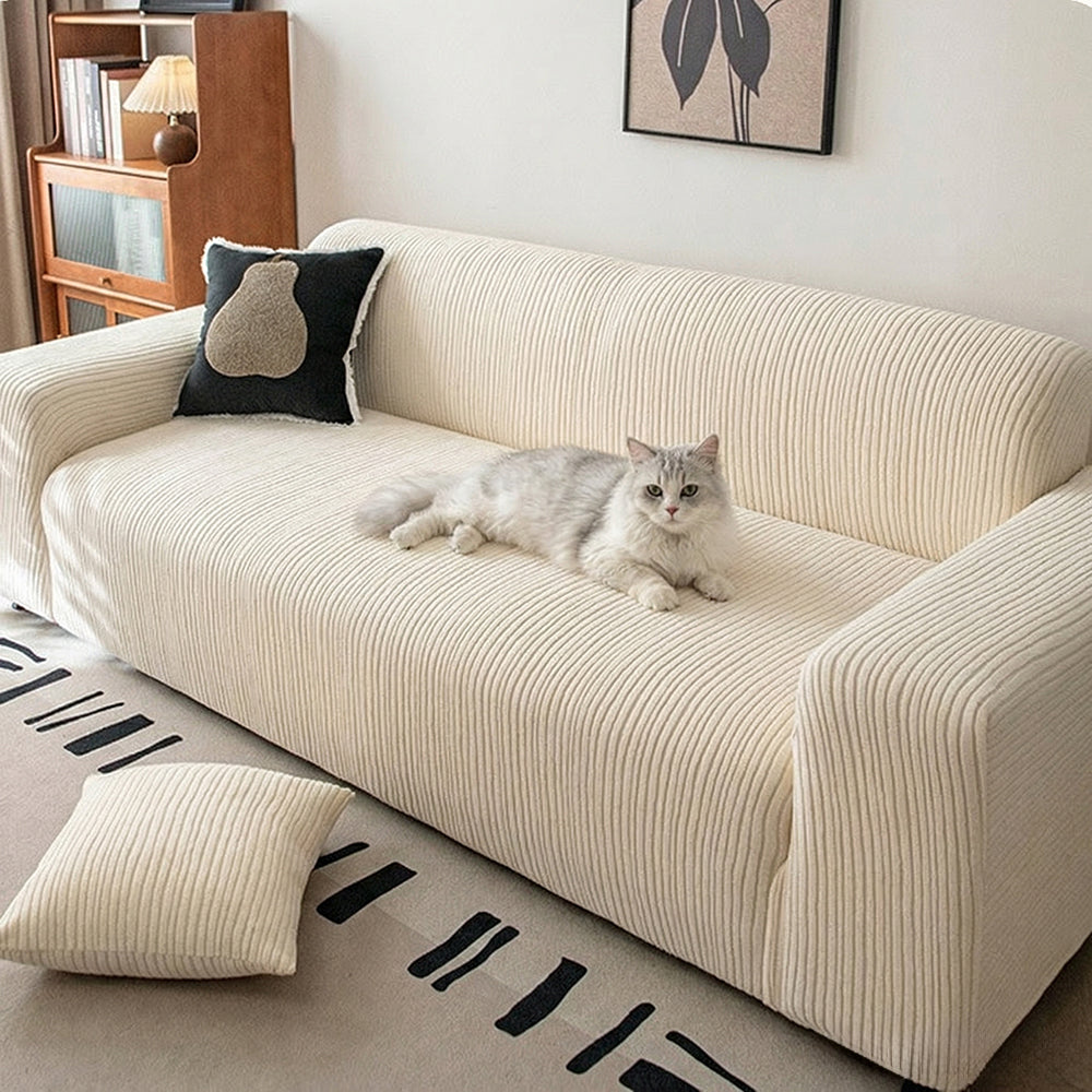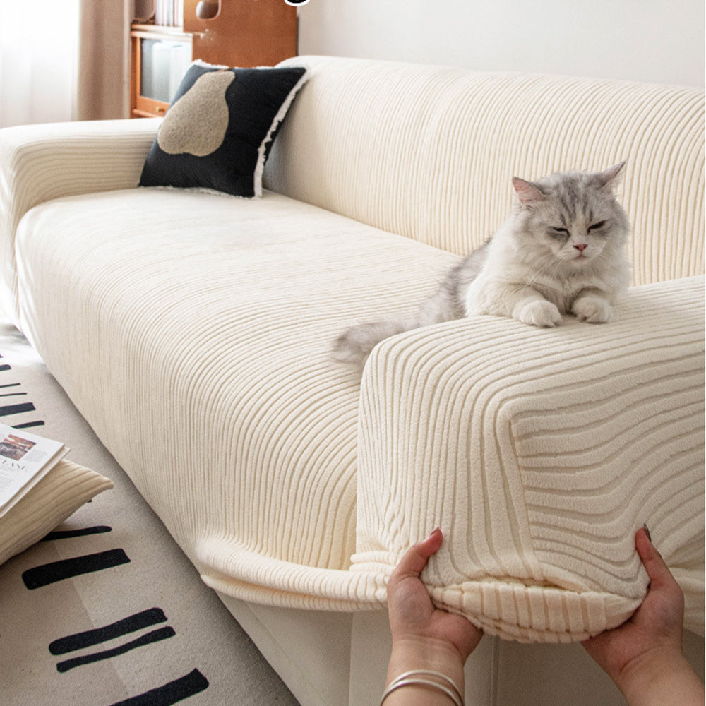 Vertical Stripe Corduroy Stretch Sofa Cover – Anti-Scratch, Full-Cover Pet Protector