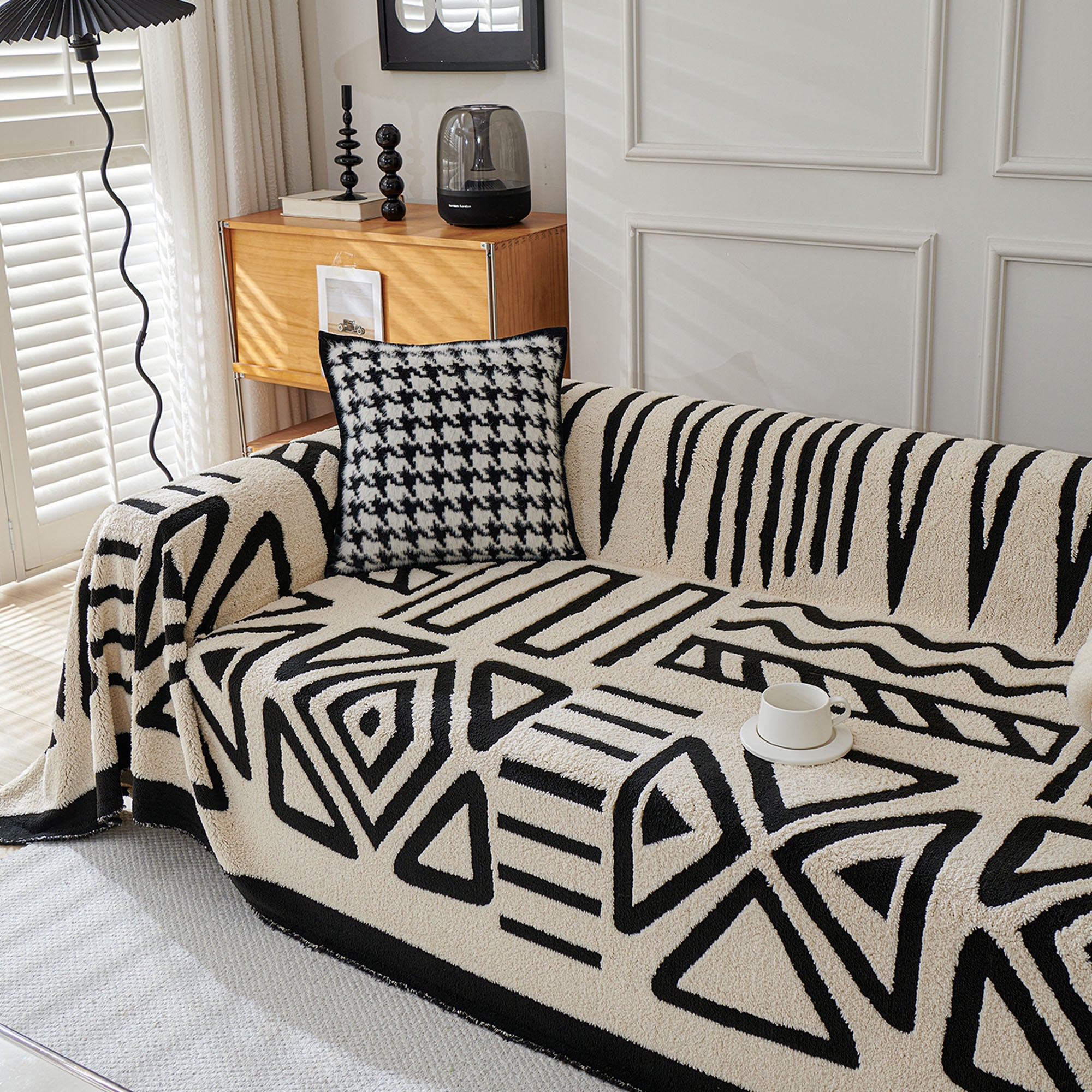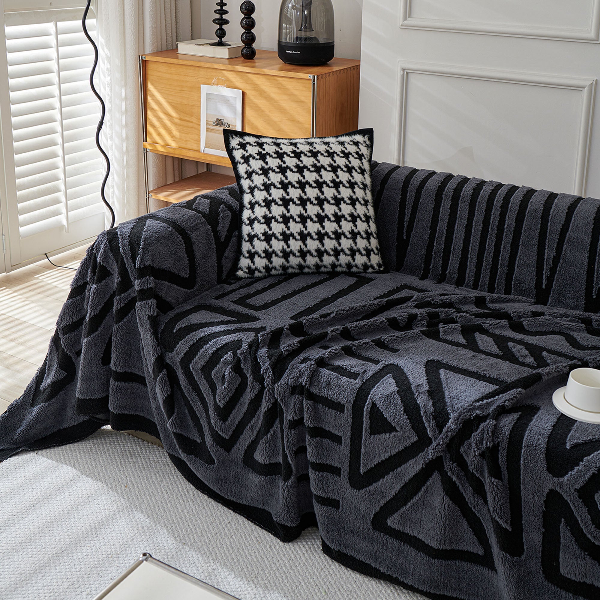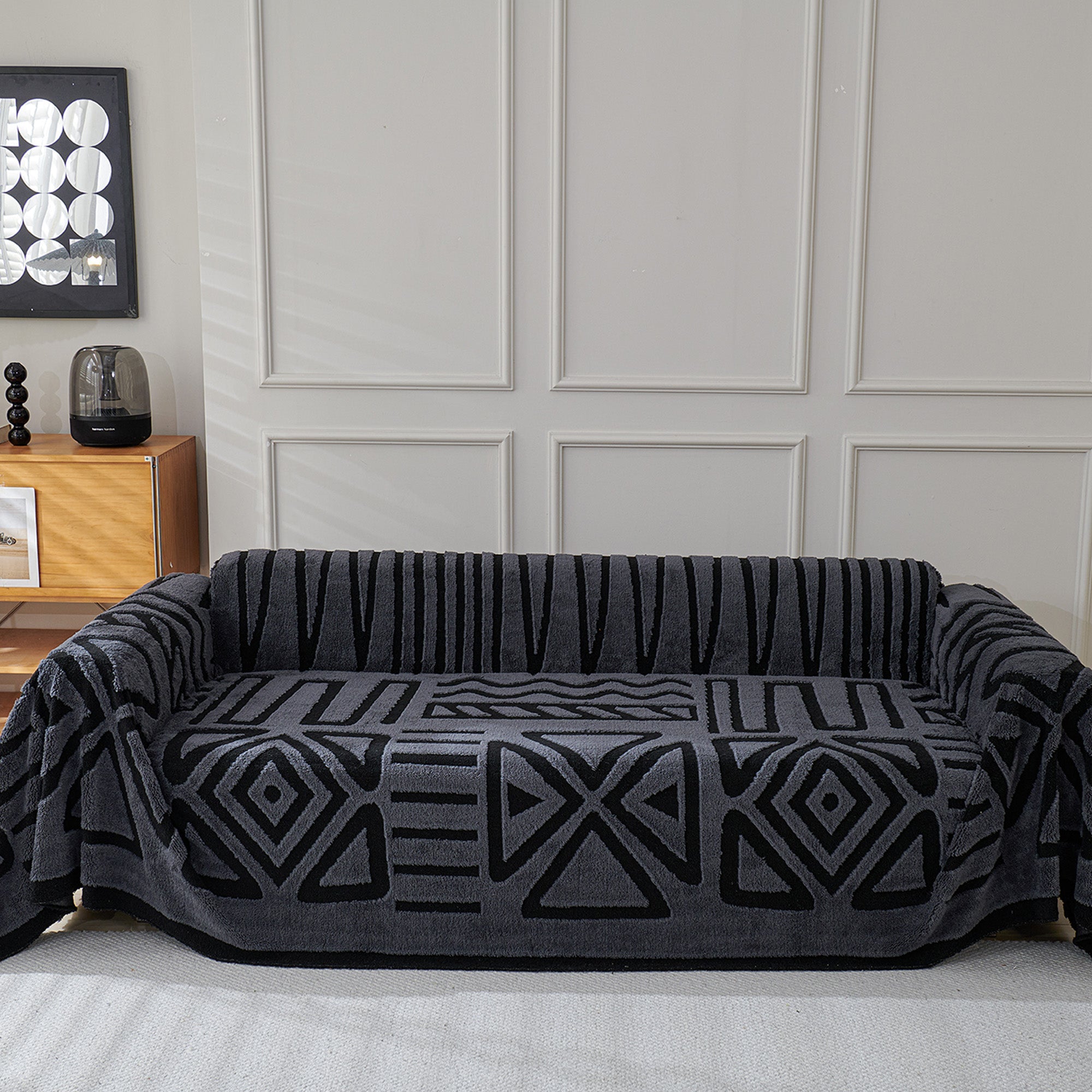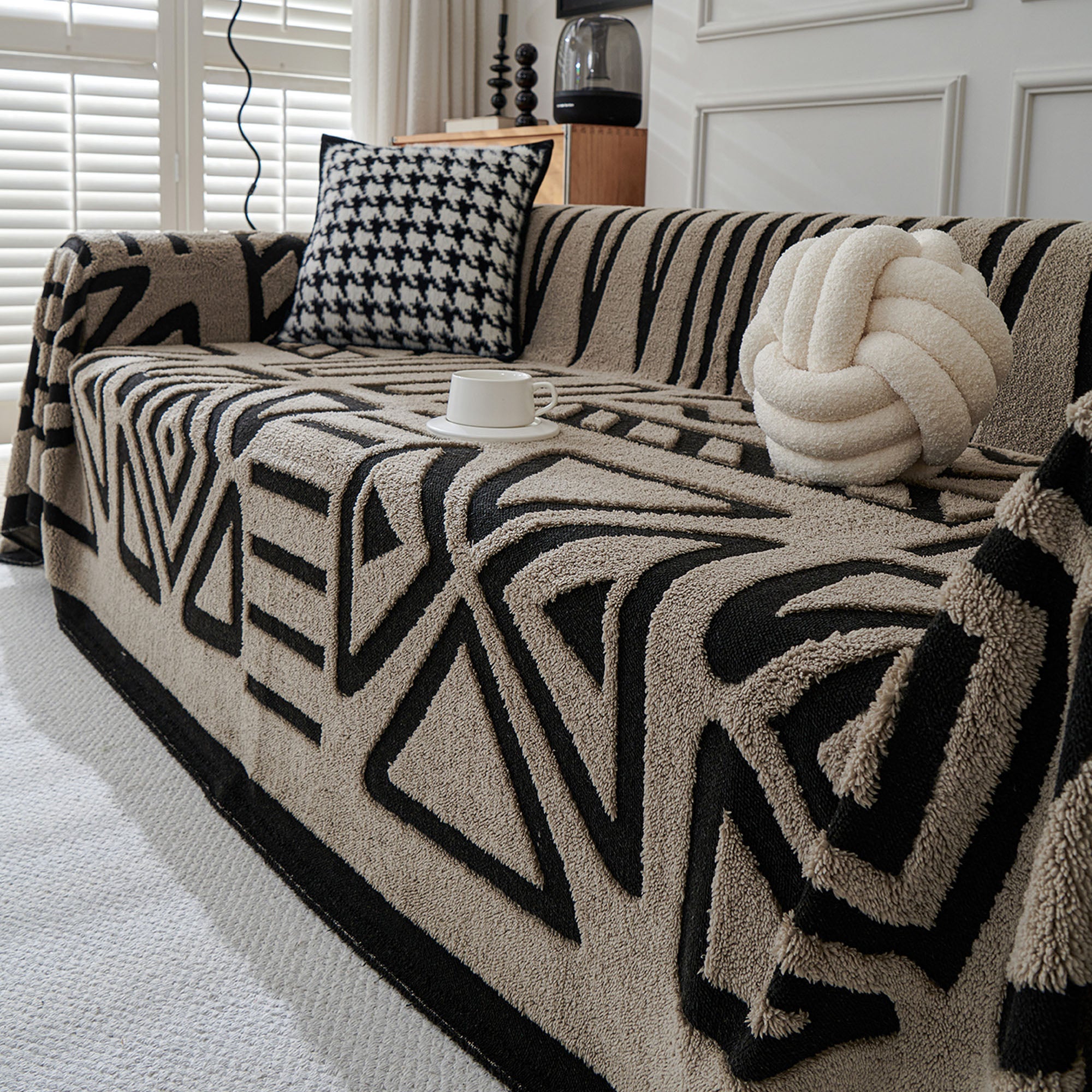 Transform your living space with our luxurious plush sofa cover, featuring bold geometric patterns for a touch of modern sophistication. This versatile piece combines style and function, providing a cozy haven for both you and your furry companions while protecting your furniture.