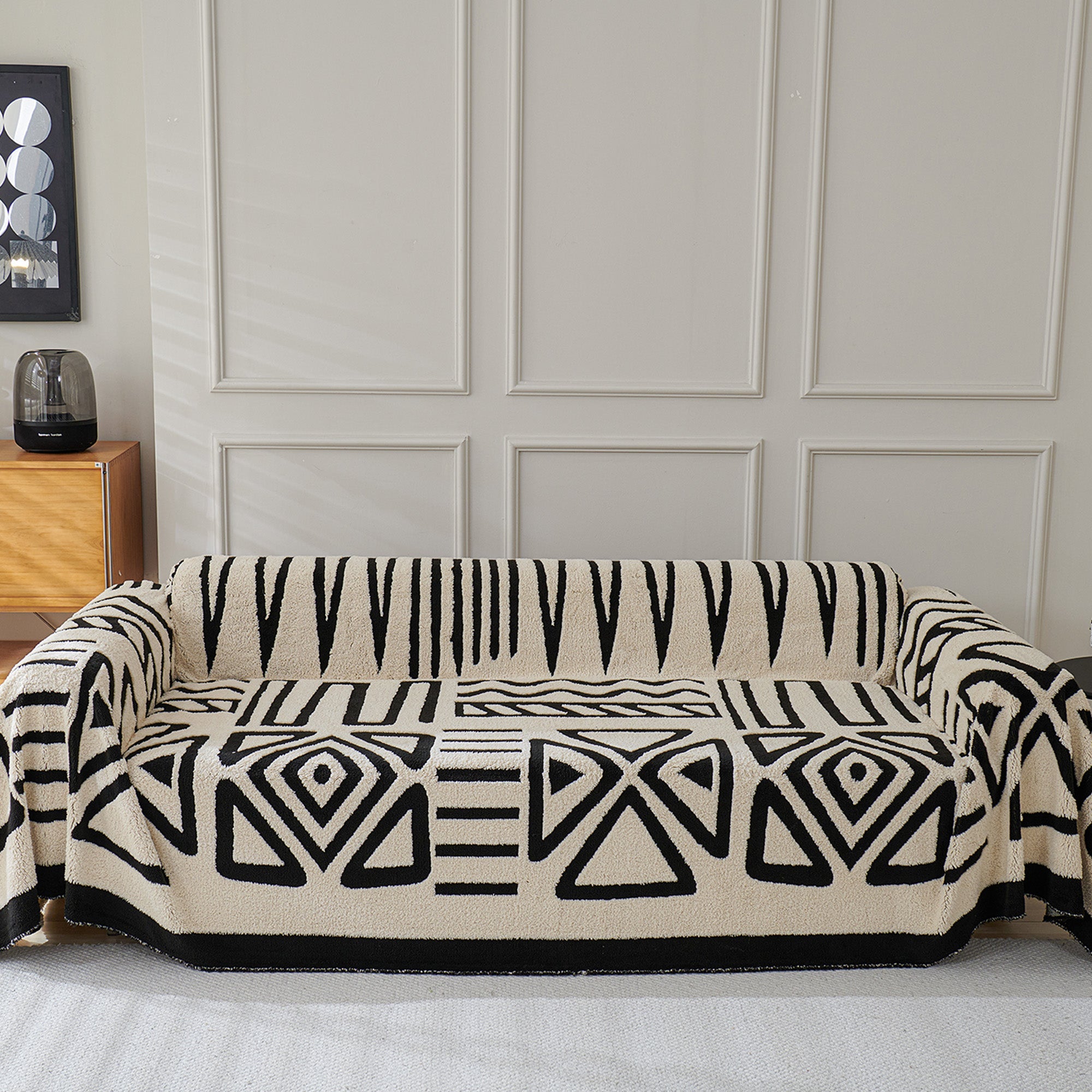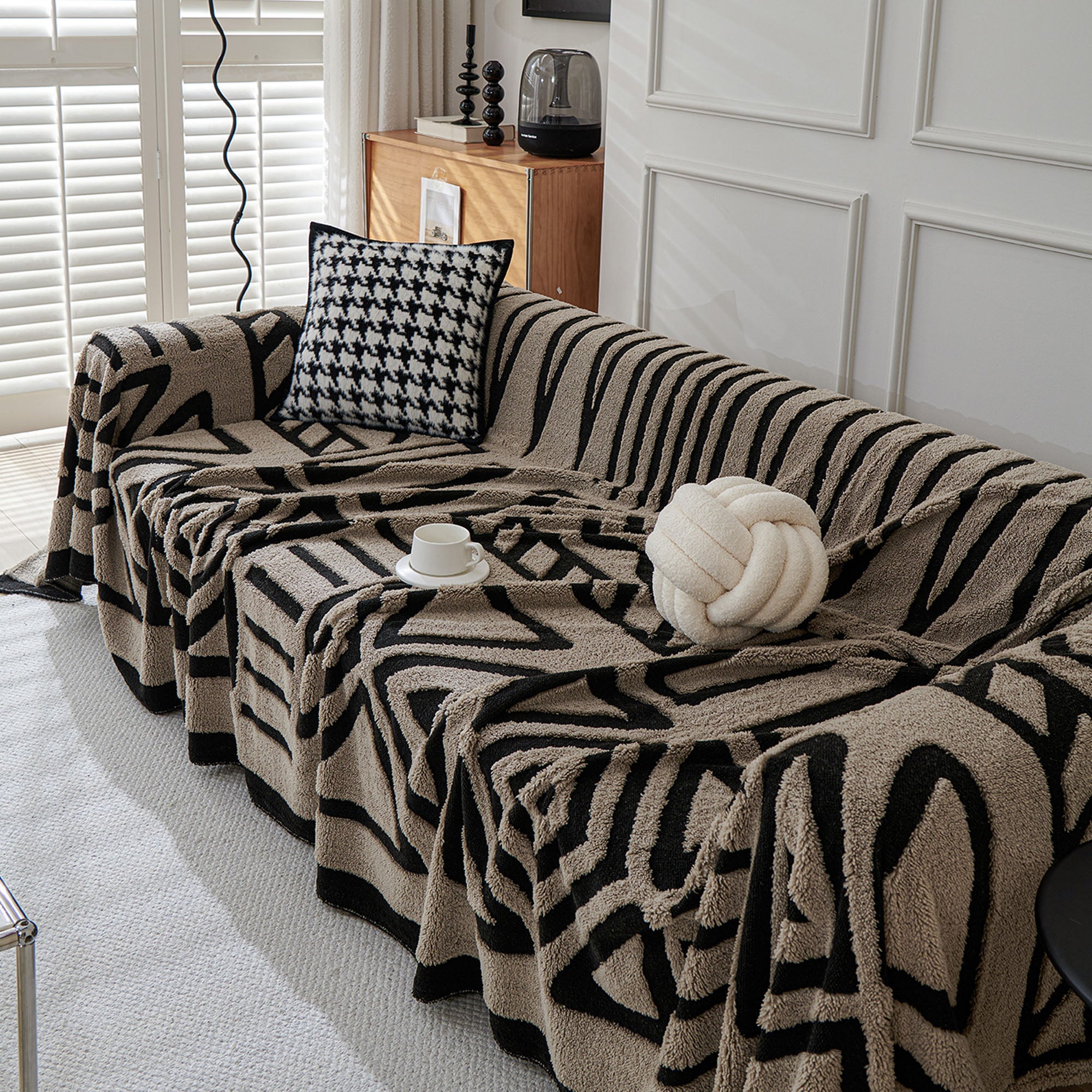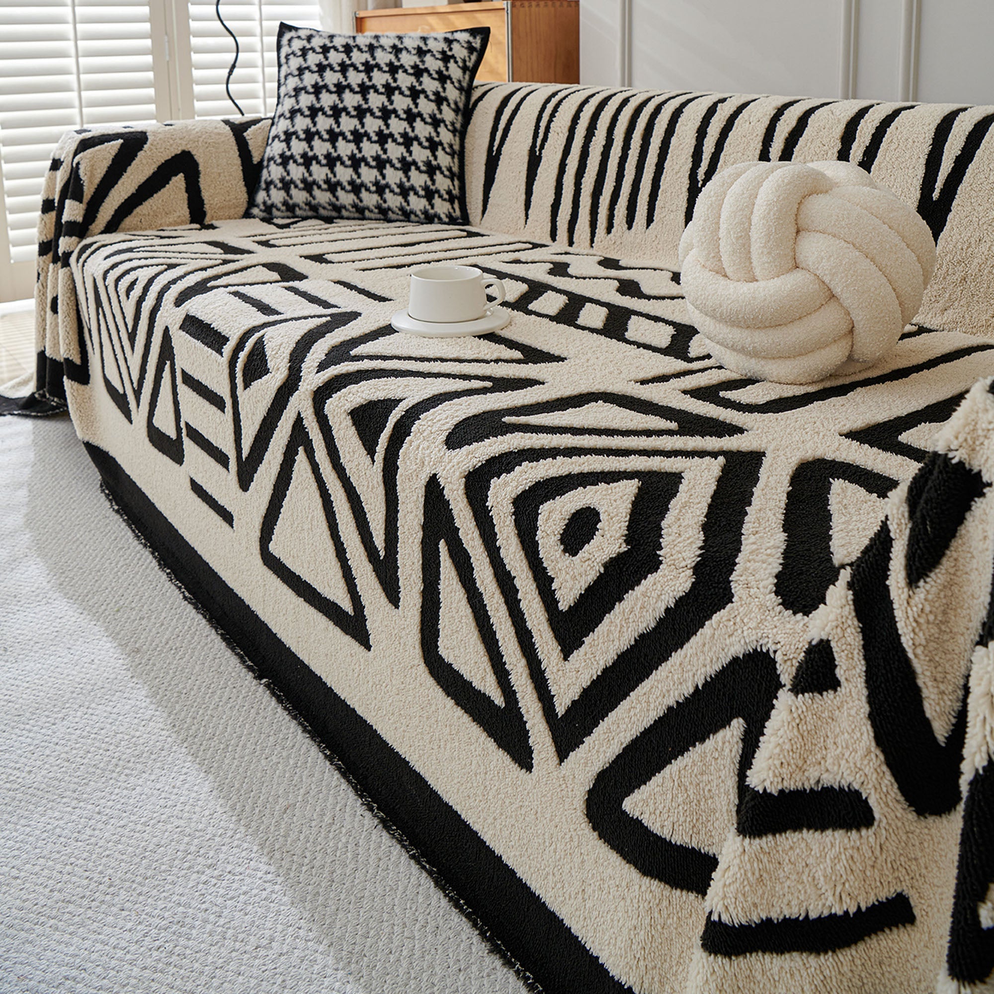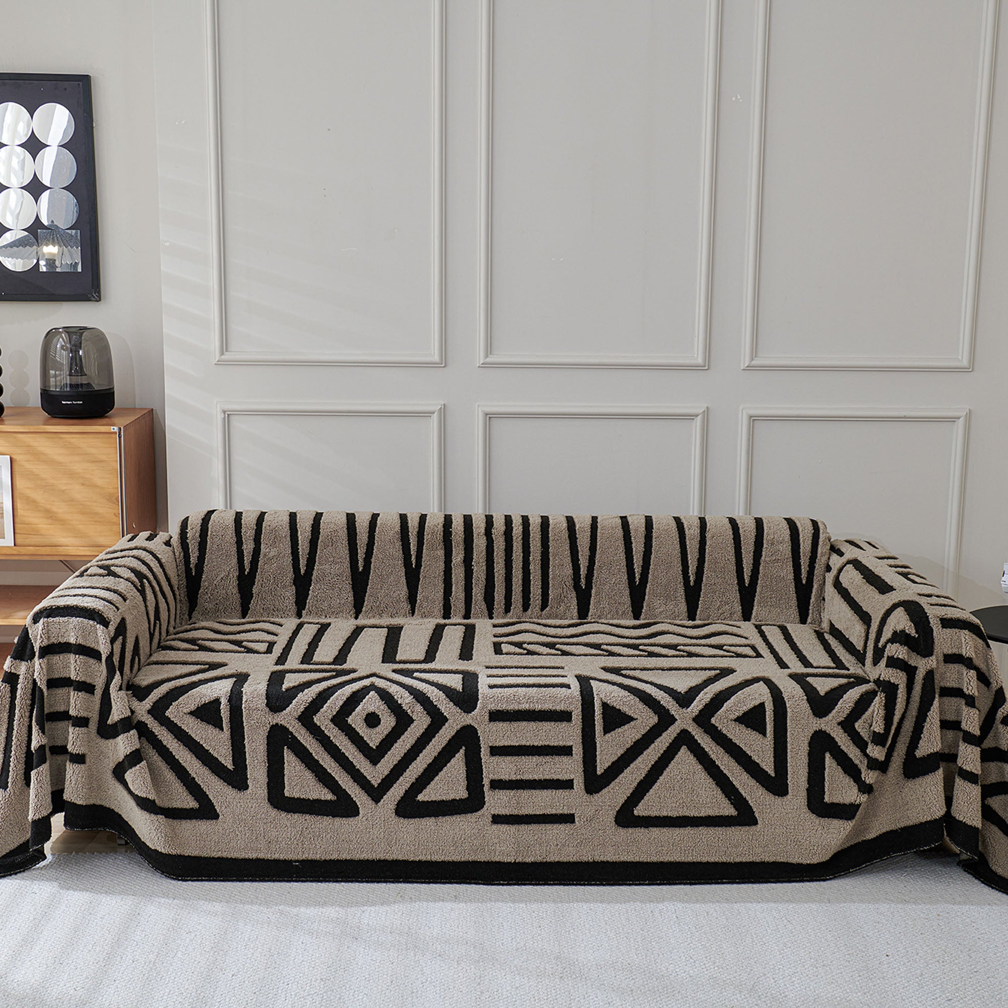 Transform your living space with our luxurious plush sofa cover, featuring bold geometric patterns for a touch of modern sophistication. This versatile piece combines style and function, providing a cozy haven for both you and your furry companions while protecting your furniture.