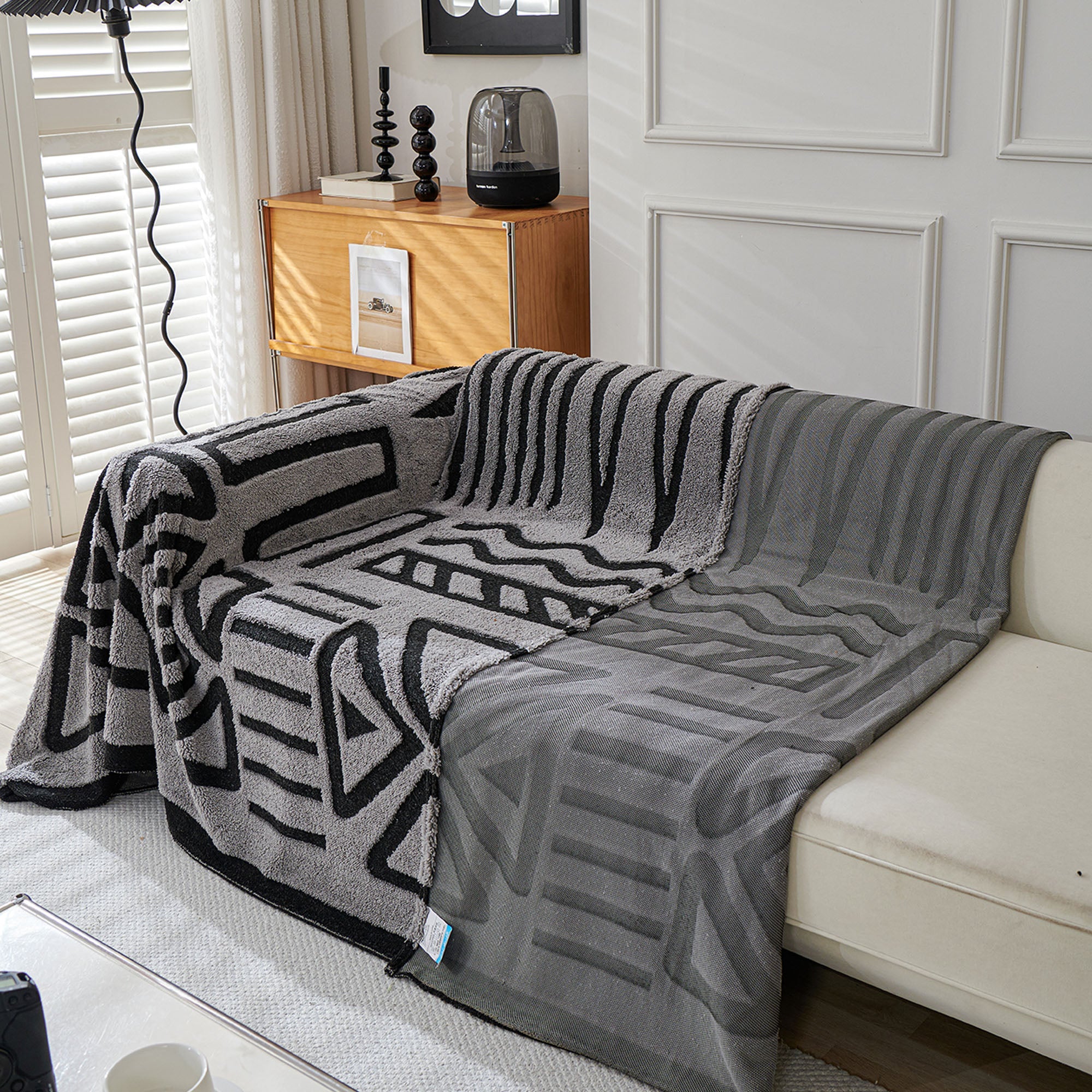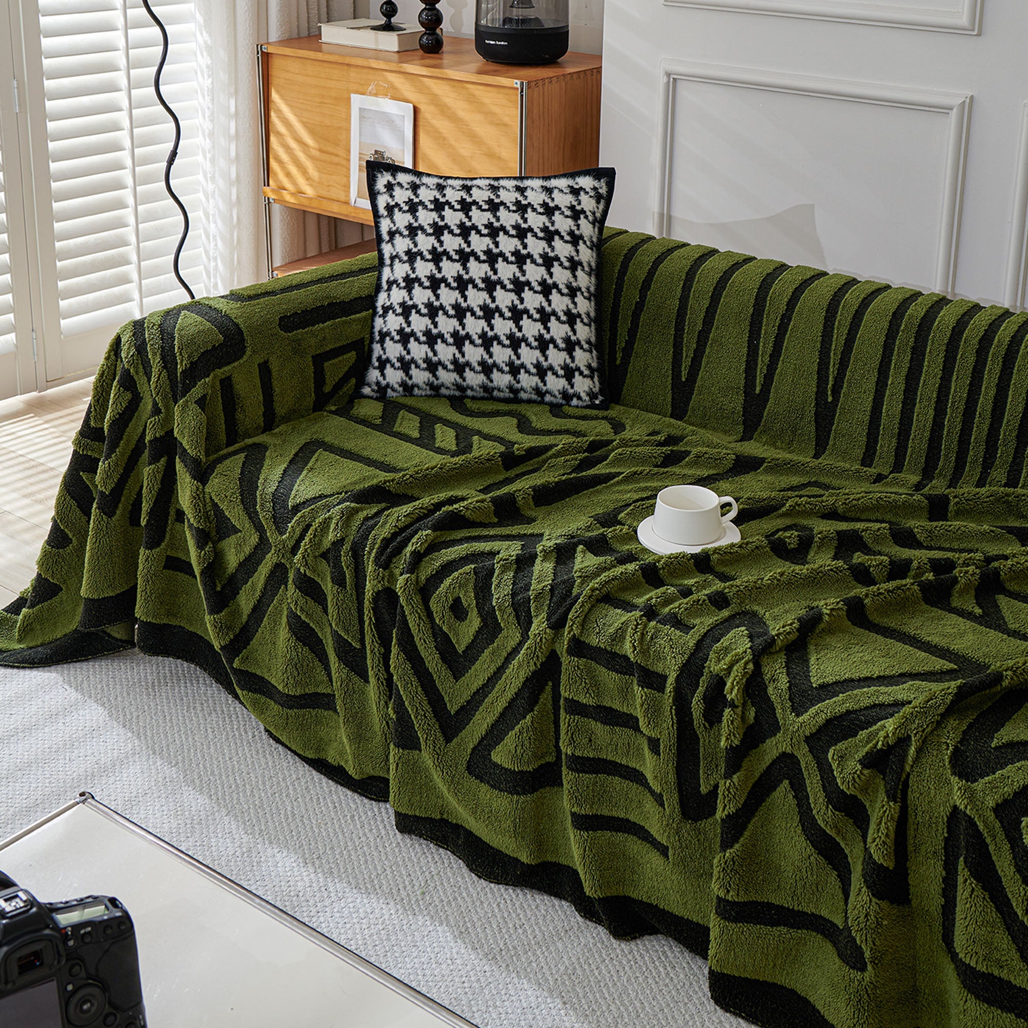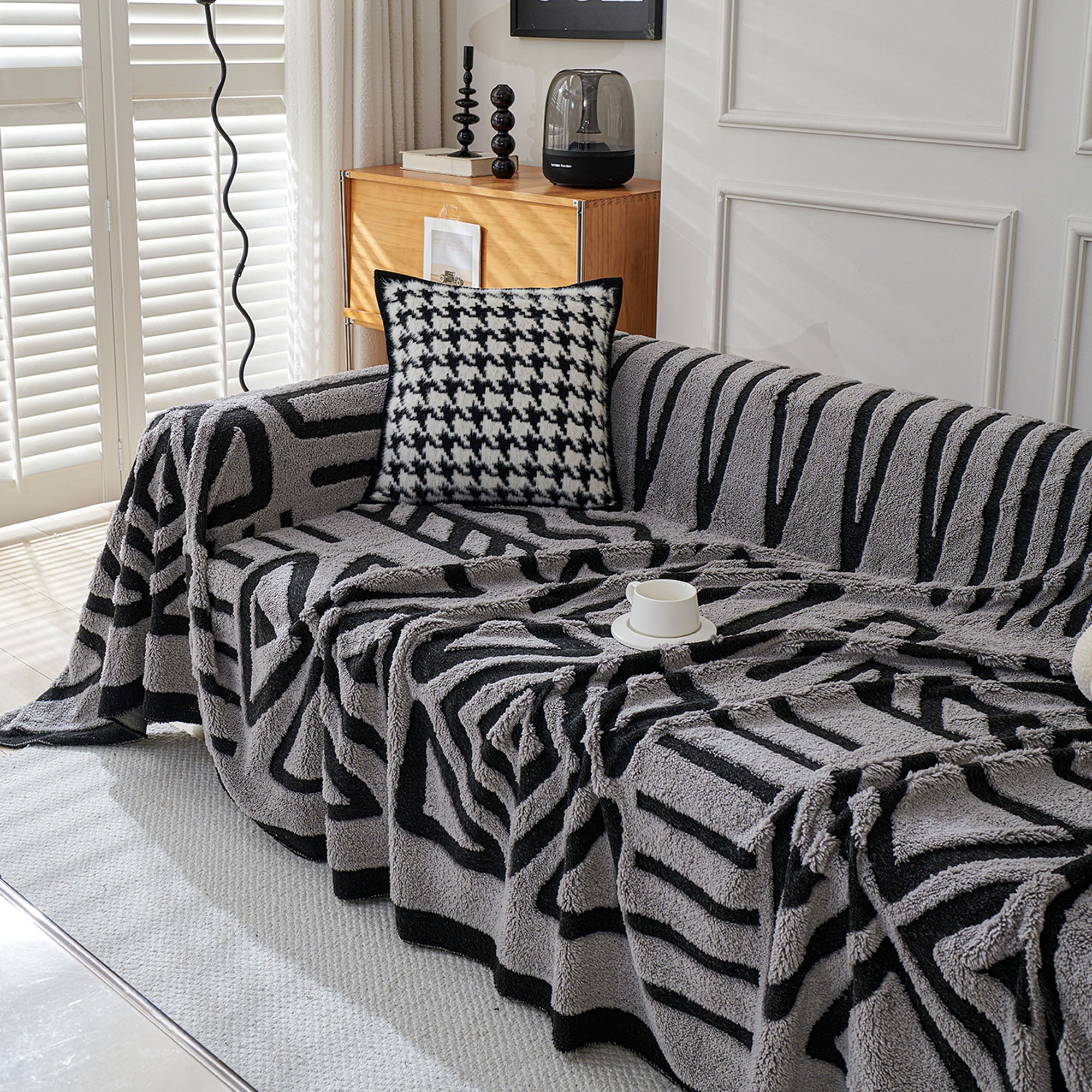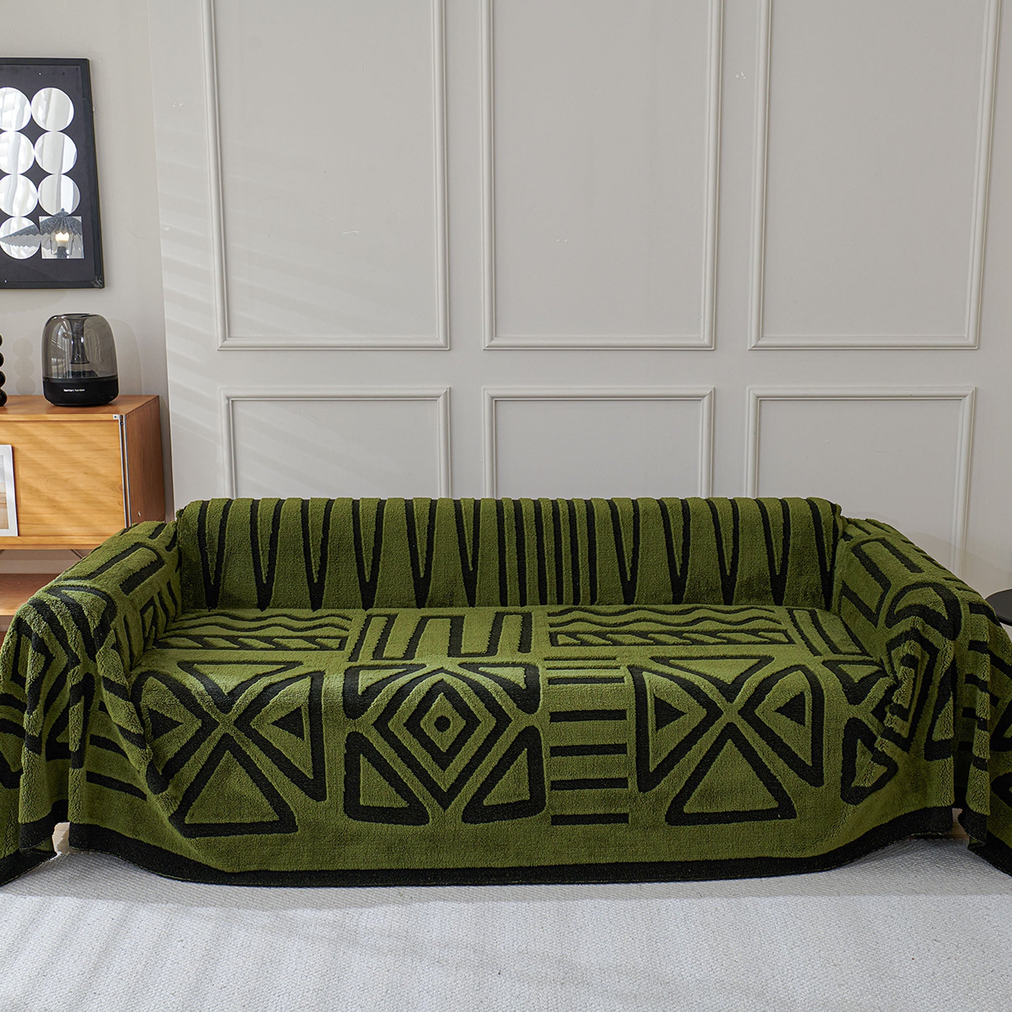 Transform your living space with our luxurious plush sofa cover, featuring bold geometric patterns for a touch of modern sophistication. This versatile piece combines style and function, providing a cozy haven for both you and your furry companions while protecting your furniture.