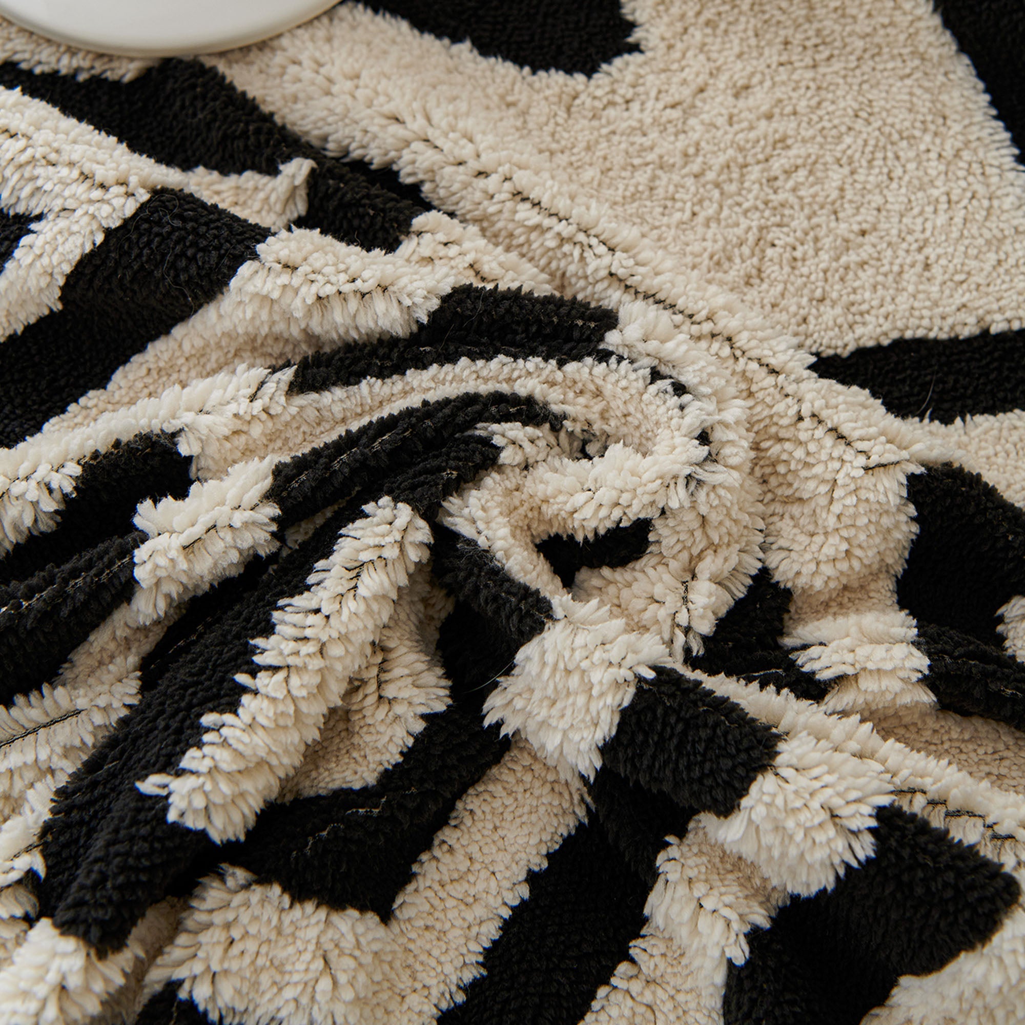 • Modern Geometric Design: Eye-catching black-and-beige geometric patterns add a stylish statement to any room decor.