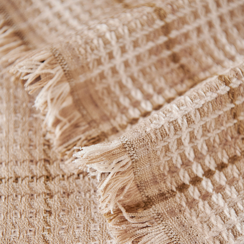 A soft, layered plaid pattern adds warmth, texture, and understated modern charm