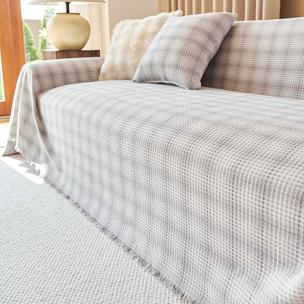 Soft Breathable Herringbone Plush Pet-Friendly Multi-Purpose Minimalist Sofa Cover – Woven Throw Couch Protector
