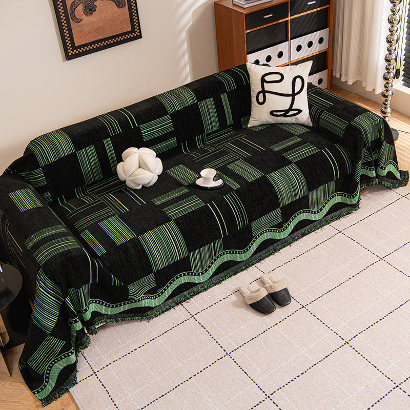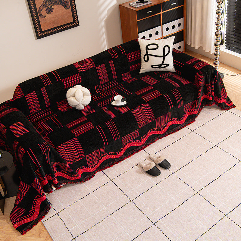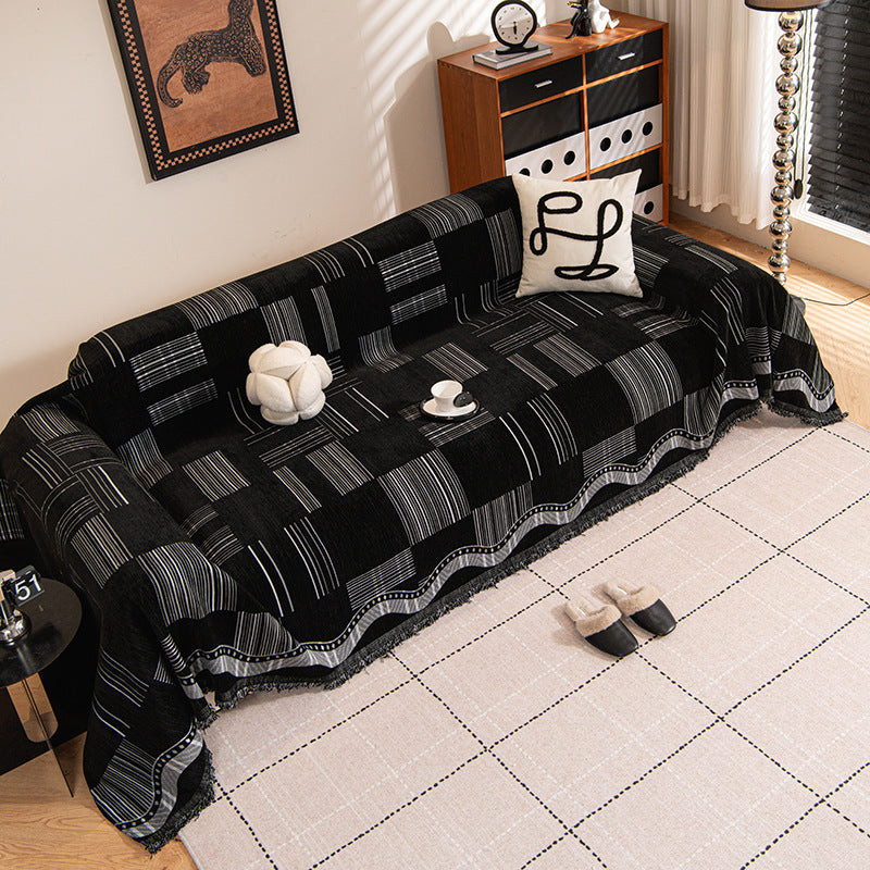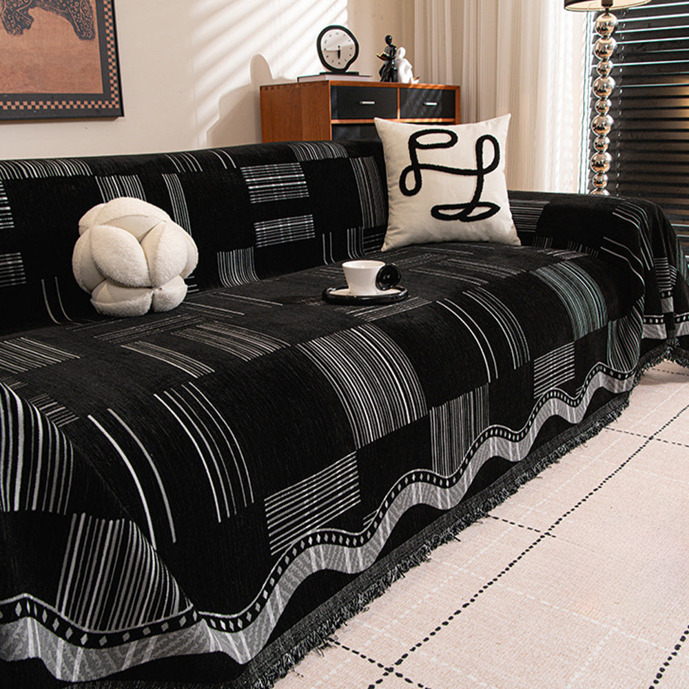 Bring bold pattern and refined texture to your home with the Luxe Grid Chenille Sofa Cover. Featuring a modern geometric grid design with rich contrast tones, this cover adds depth and a refined statement to your sofa while helping protect against daily wear, pet hair, and scratches. Soft, non-slip, and durable for year-round use, it works beautifully as both a decorative throw and a practical sofa protector.