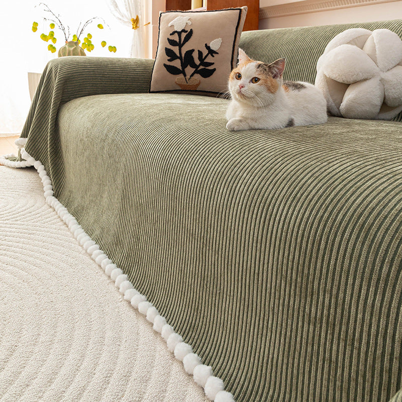 Vertical Stripe Corduroy Stretch Sofa Cover – Anti-Scratch, Full-Cover Pet Protector