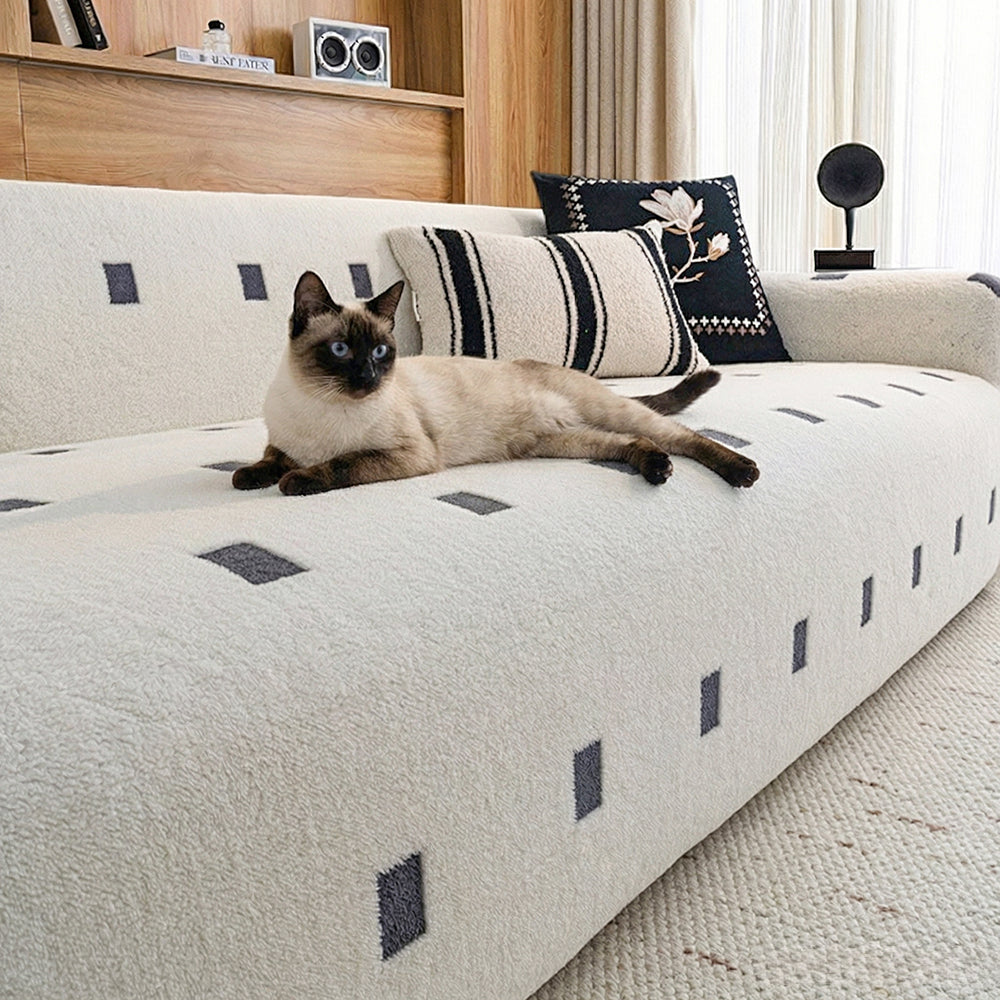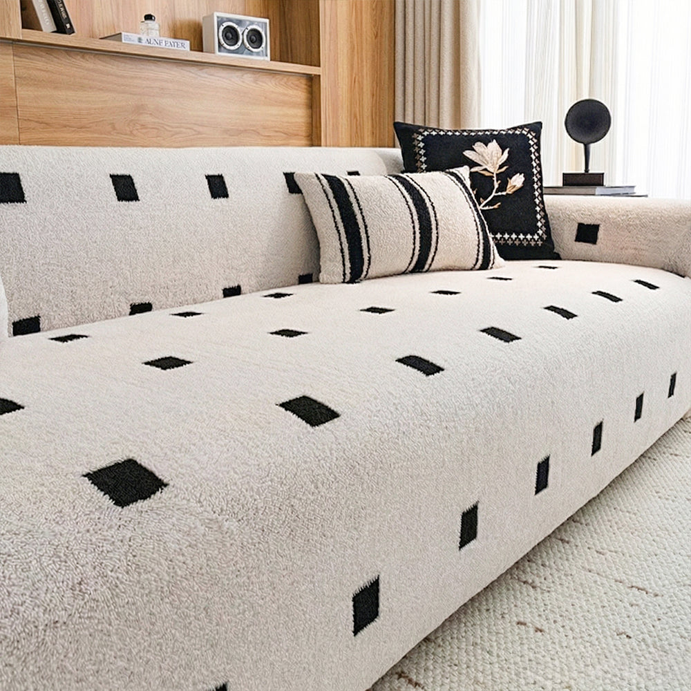 Refine your space with the MonoDot Plush Full-Cover Sofa Slipcover—a modern minimalist essential that blends soft comfort with bold geometric accents. Crafted from ultra-plush, high-stretch fabric, it delivers full-coverage protection while adding subtle visual interest through its clean square pattern. Ideal for contemporary homes, pet owners, and those who appreciate understated elegance.