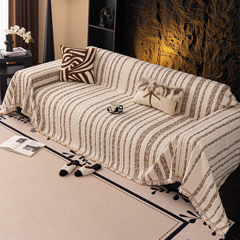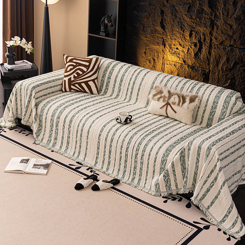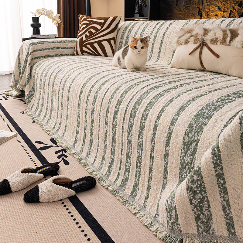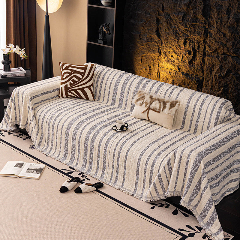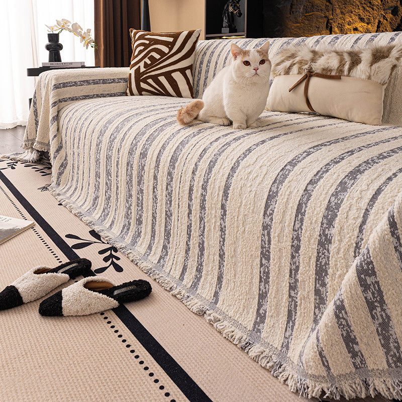 Bring soft texture and understated elegance to your home with the Softline Woven Striped Chenille Sofa Cover. Featuring refined striped detailing and a cozy bouclé-inspired surface, this cover adds warmth and dimension to your sofa while helping protect against daily wear, pet hair, and scratches. Non-slip, soft, and durable for all-season use, it works beautifully as both a decorative throw and a practical sofa protector.