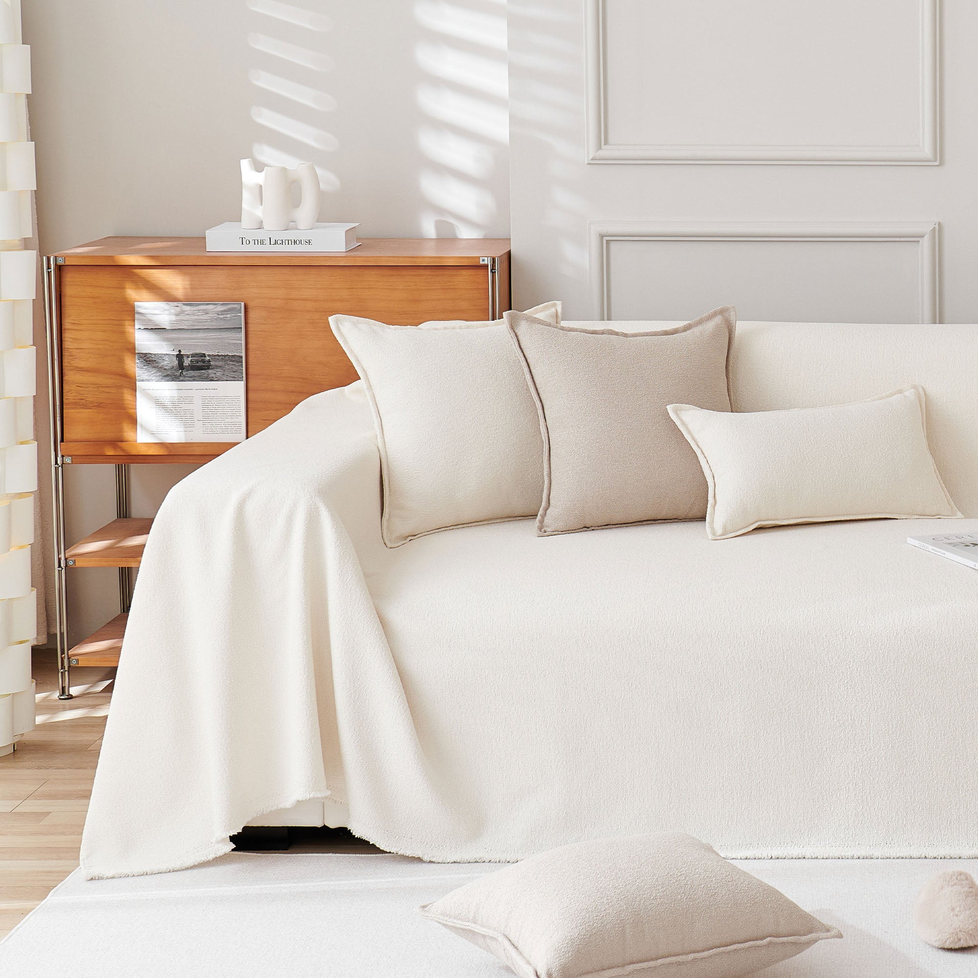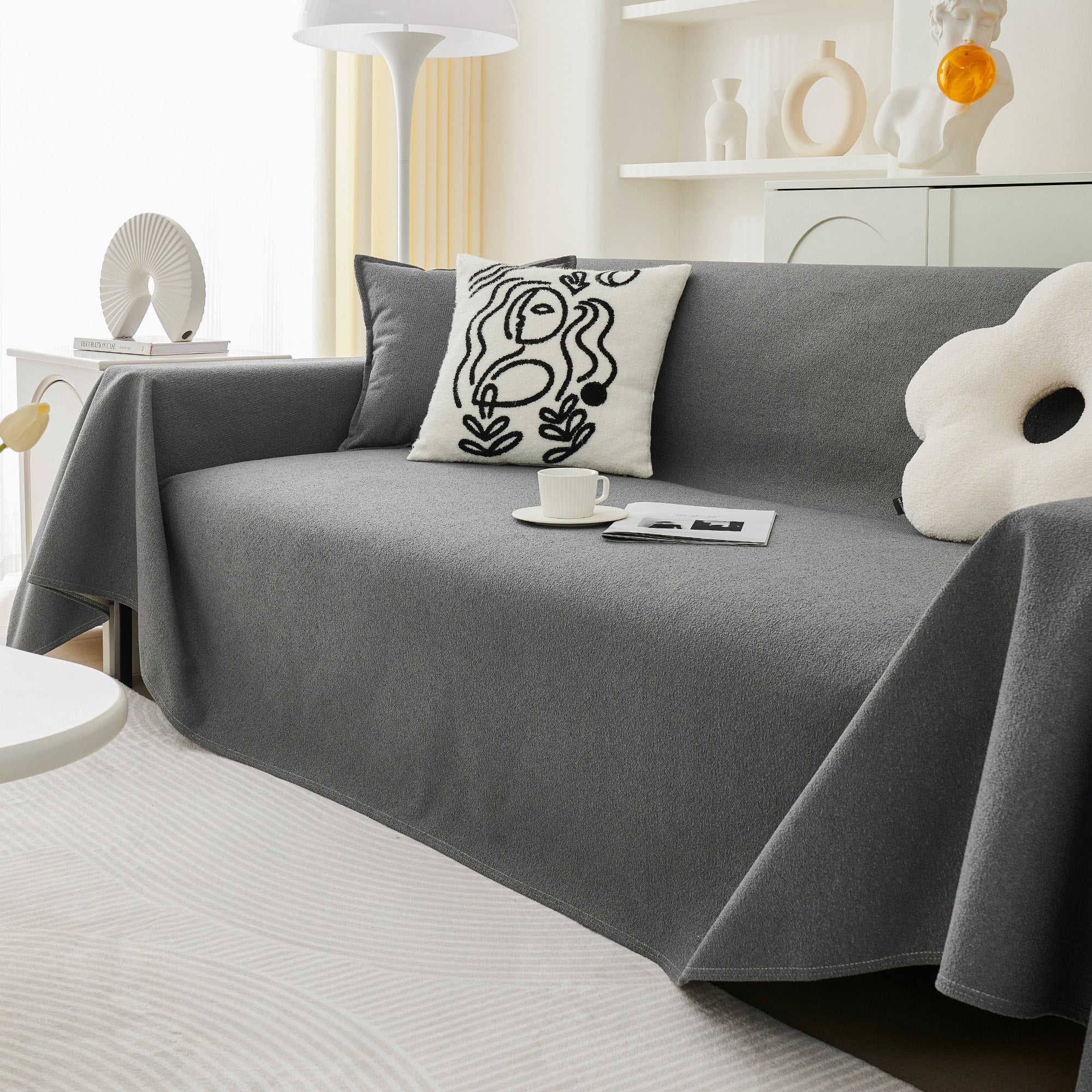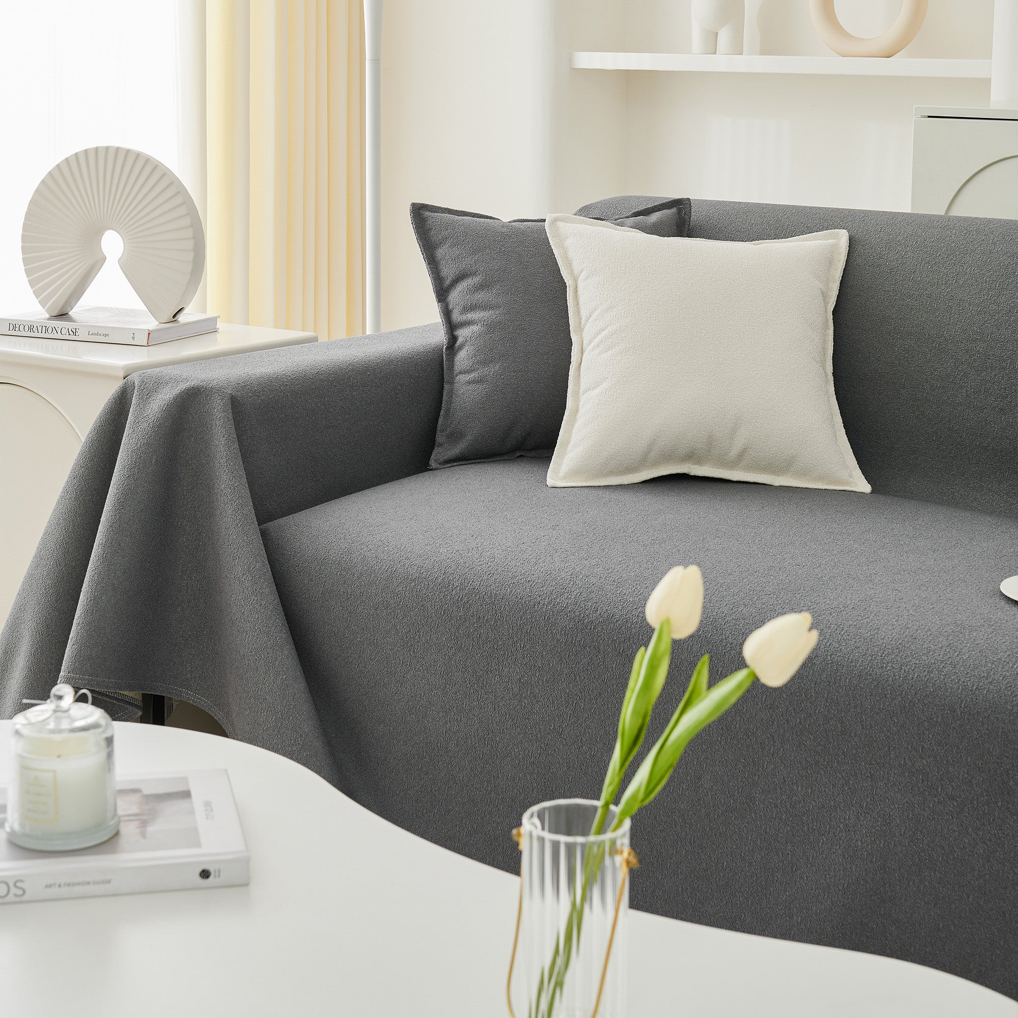 Soft Breathable Herringbone Plush Pet-Friendly Multi-Purpose Minimalist Sofa Cover – Woven Throw Couch Protector