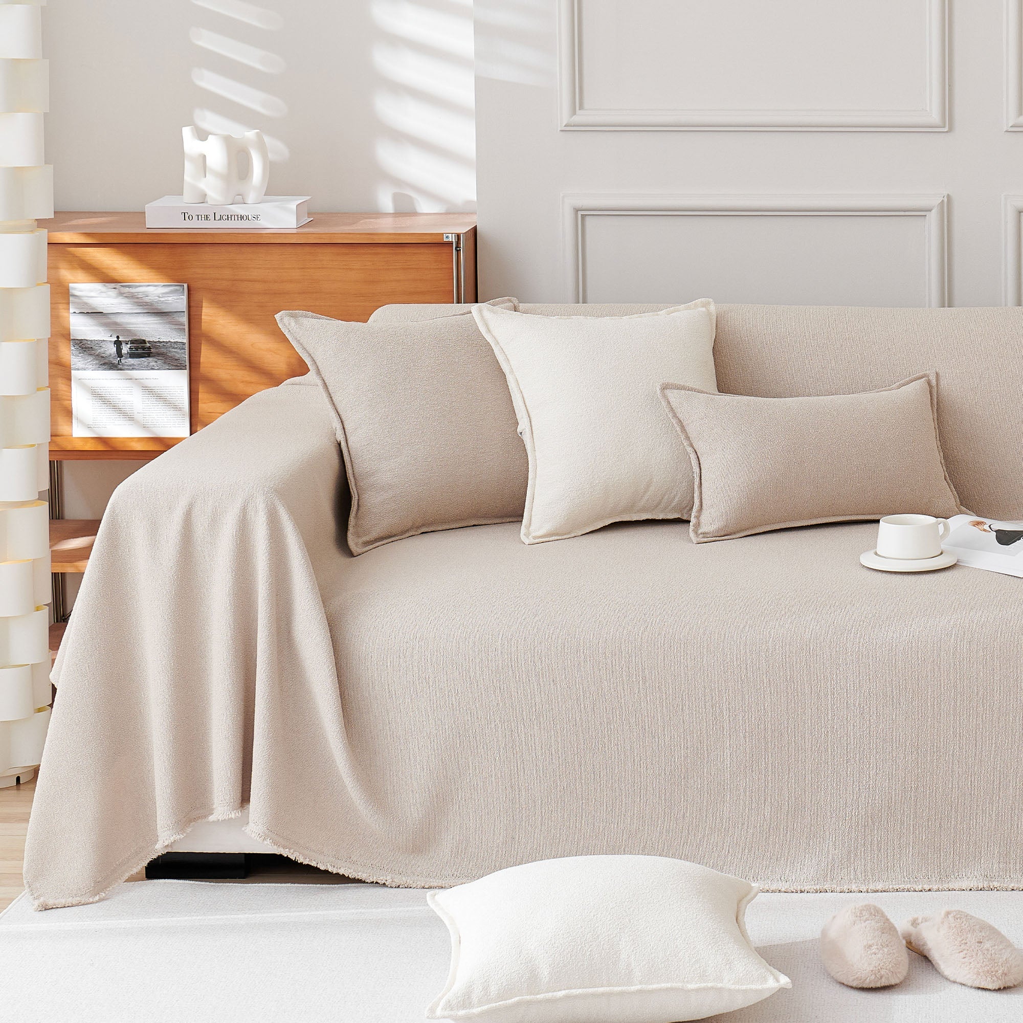 Cooling Modern Woven Textured Soft Pet-Friendly Durable Sofa Cover – Minimalist Hassle-Free Throw Couch Protector