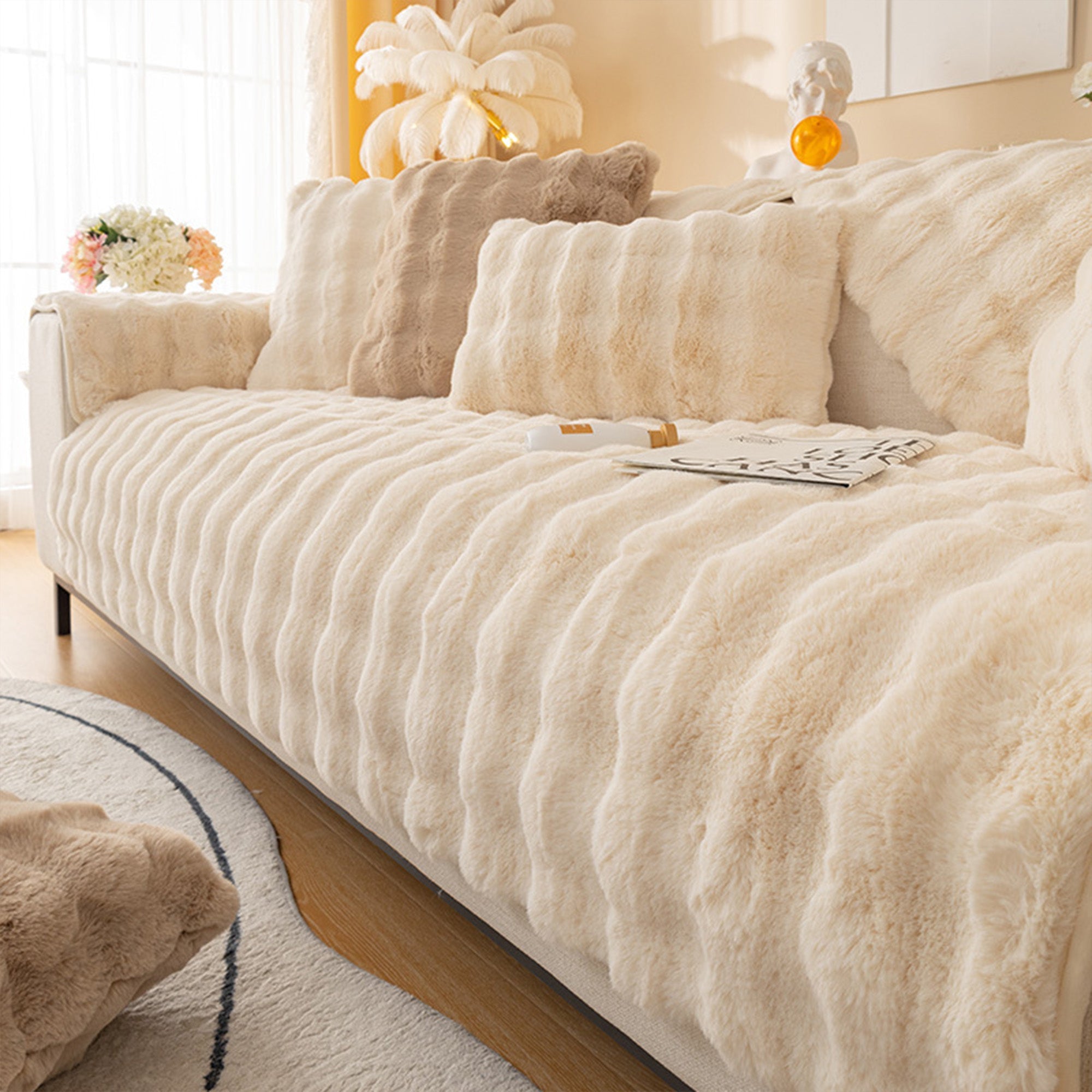 Cloud Plush Wave Faux Rabbit Fur Nonslip Sofa/Couch Cover