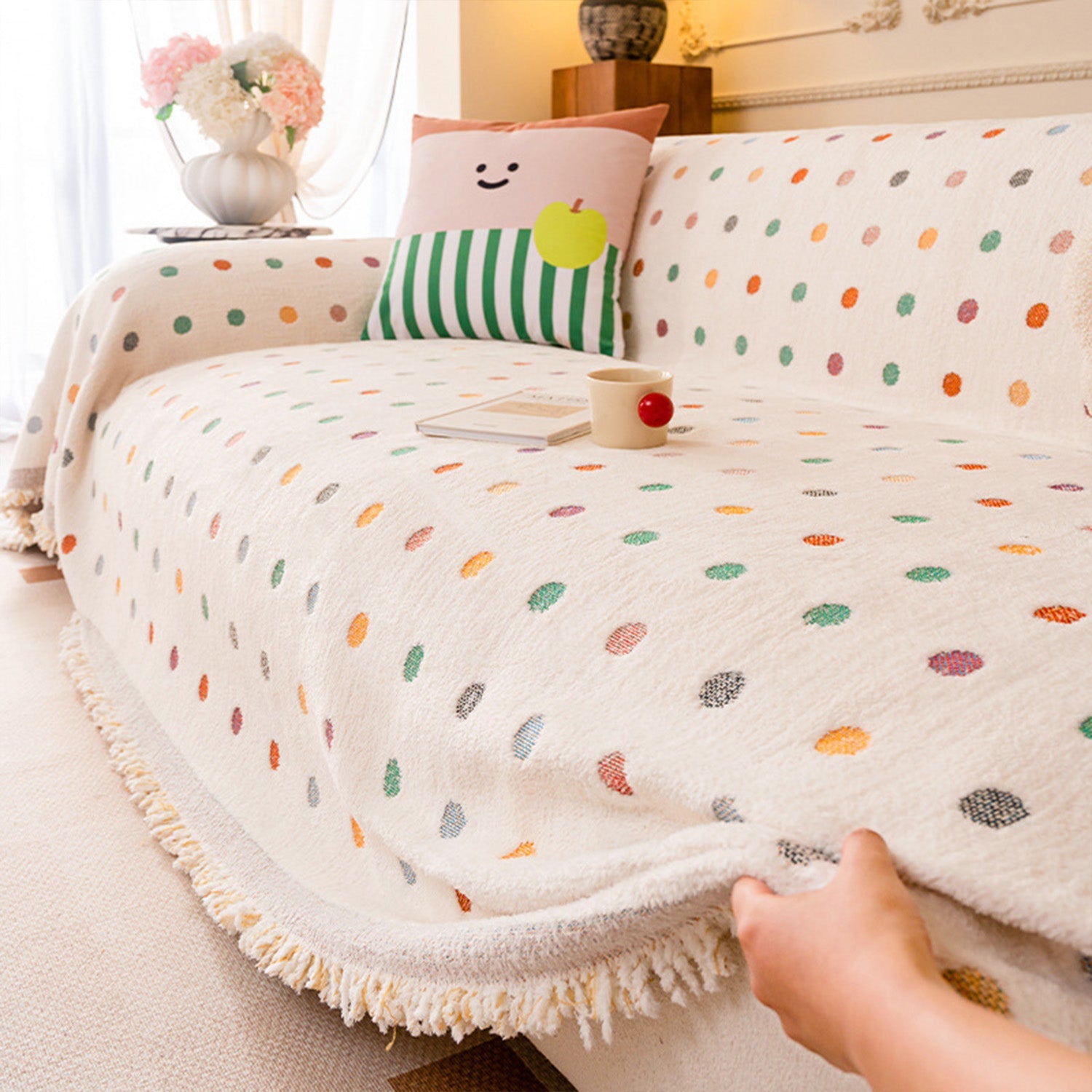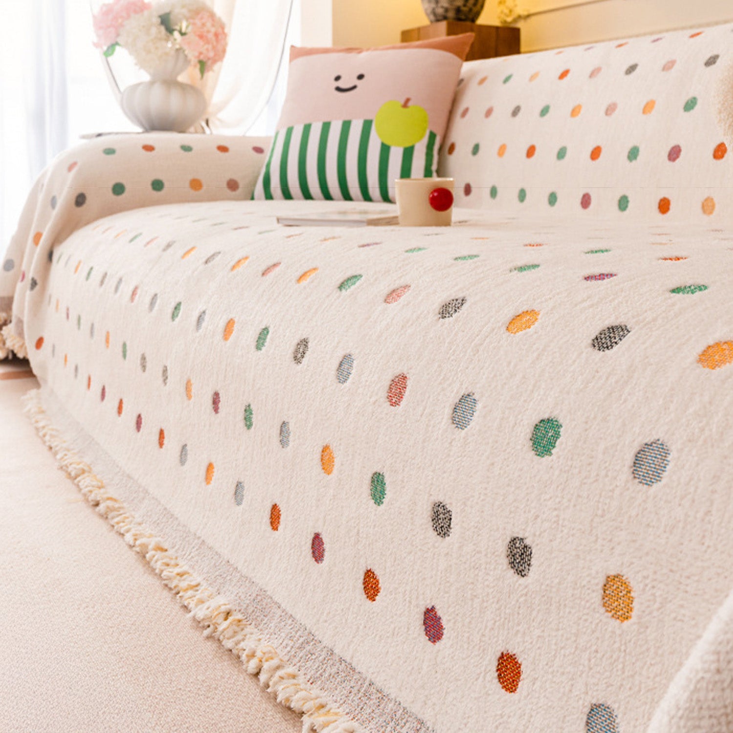 Brighten your home with playful charm and all-season comfort using our Color Dot Chenille Scratch-Resistant Sofa/Couch Cover. Featuring a delightful multi-color dot pattern, this cover adds a lively and cozy touch to your living space. Crafted from premium washable chenille fabric, it delivers a soft, textured feel while offering durable, pet-friendly protection against daily wear, scratches, and spills.