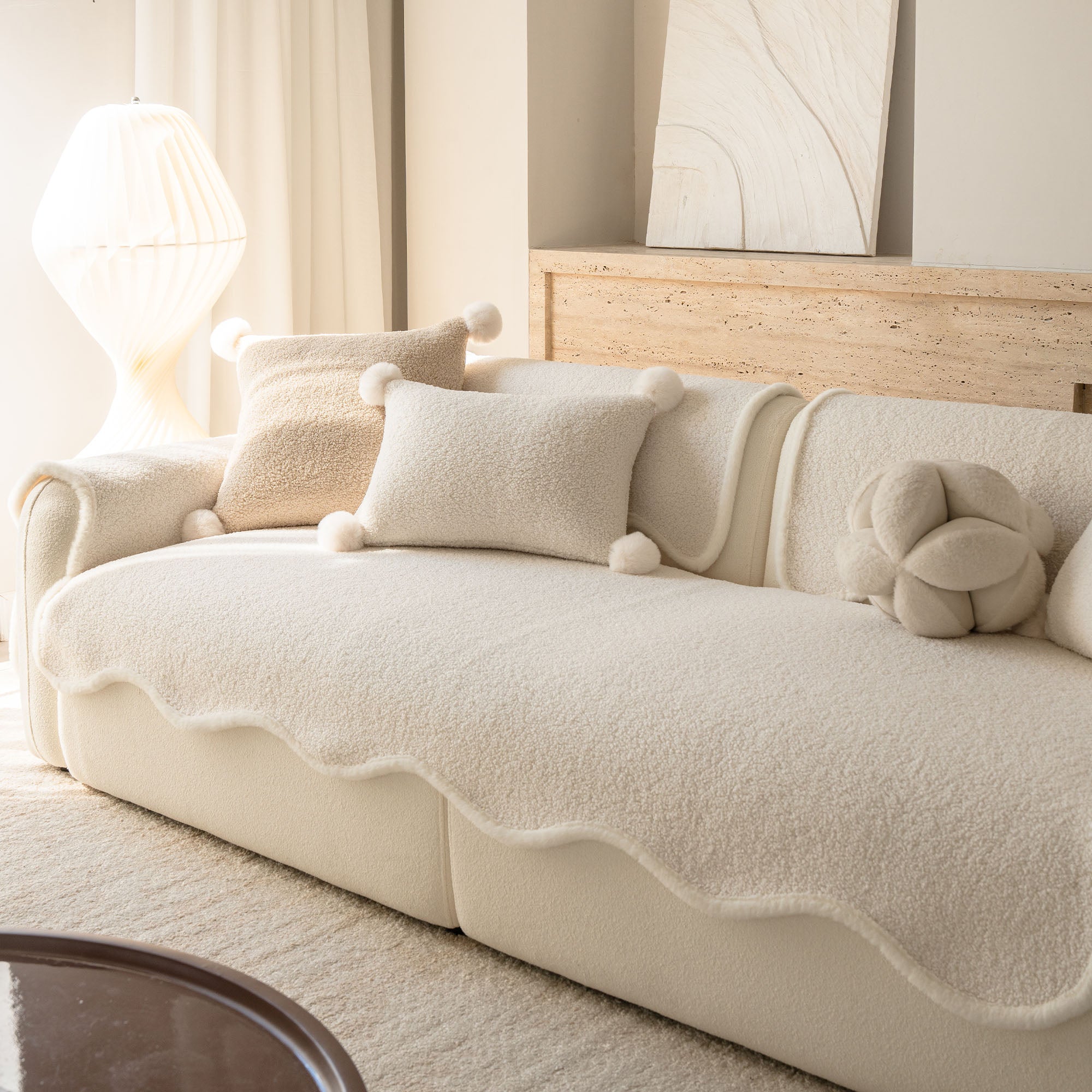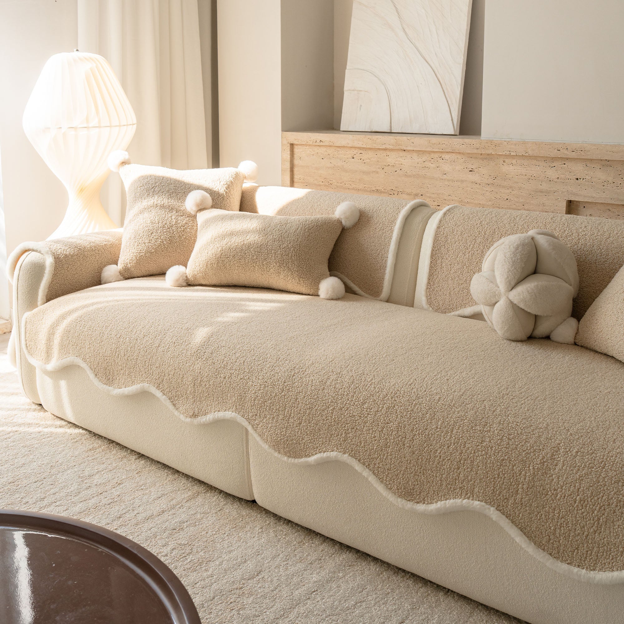 Wrap your sofa in quiet luxury with our Cozy Shearling Sherpa Nonslip Sofa/Couch Cover. The plush, high-density sherpa pile feels cloud-soft yet wears beautifully through fall and winter. A stay-put nonslip backing helps the cover hug your seat cushions and armrests, while the softly scalloped edge adds a refined, designer finish. Pet- and family-friendly, it shields your sofa from hair, scratches, crumbs, and everyday spills—so your living room always looks guest-ready.