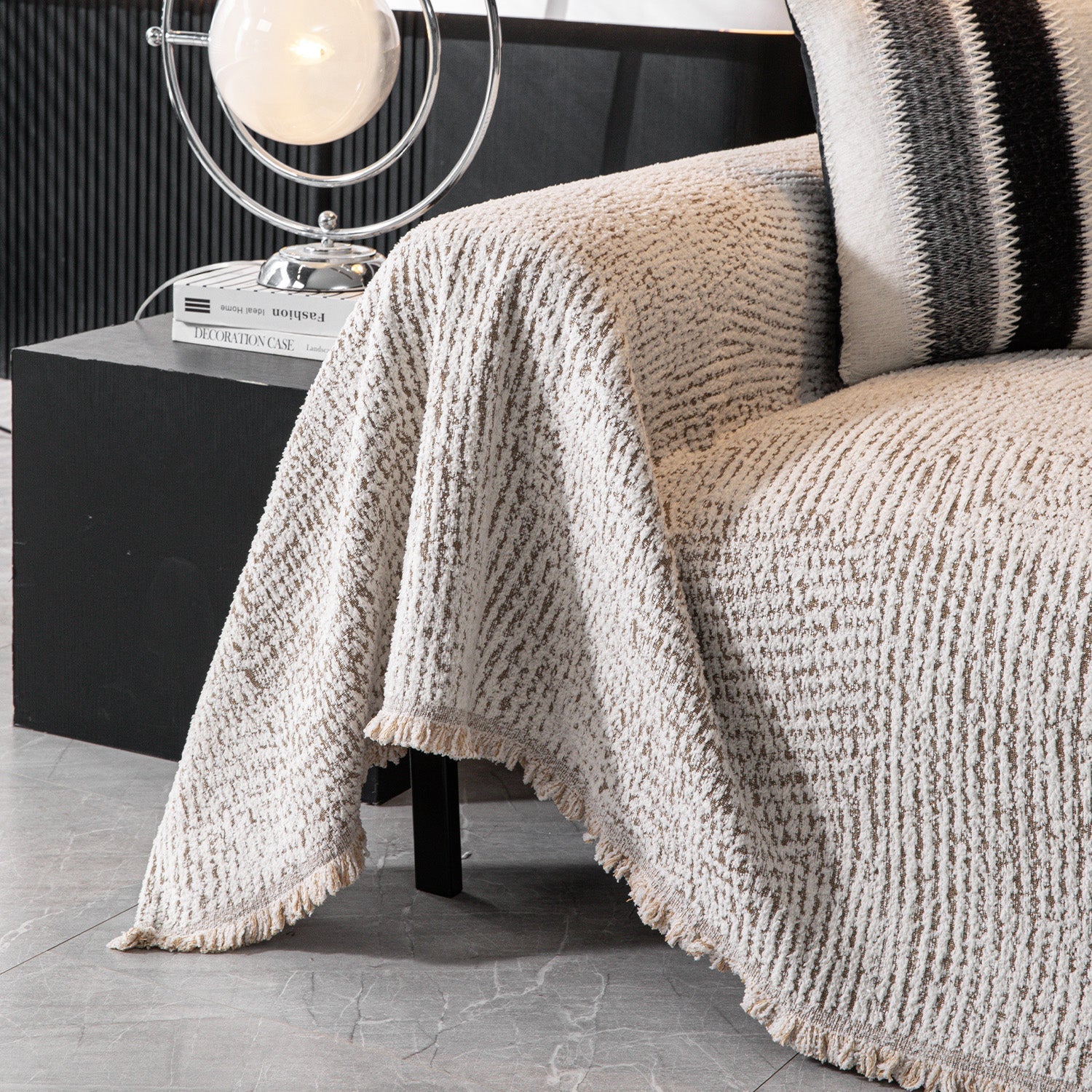 Soft Breathable Herringbone Plush Pet-Friendly Multi-Purpose Minimalist Sofa Cover – Woven Throw Couch Protector