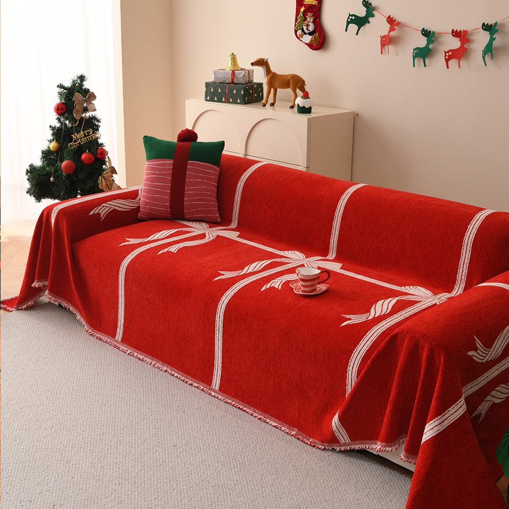 Festive Ribbon Chenille Scratch-Resistant Sofa/Couch Cover