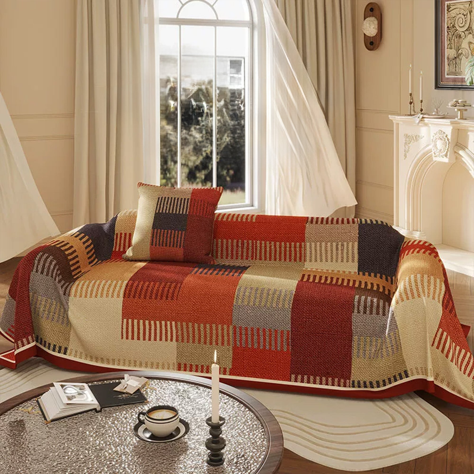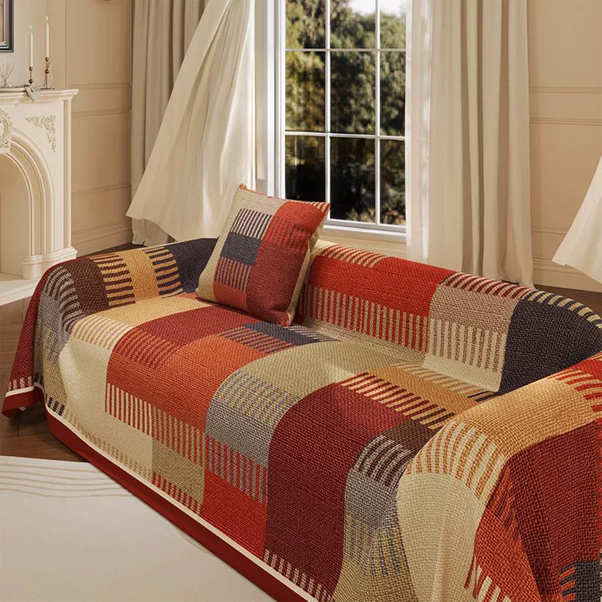 Revitalize your living space with the Geometric Harmony Chenille Scratch-Resistant Sofa/Couch Cover, a bold blend of modern style, comfort, and protection. Featuring a striking geometric patchwork design in rich, warm tones, this cover transforms your sofa into a vibrant centerpiece while offering practical durability for everyday life.