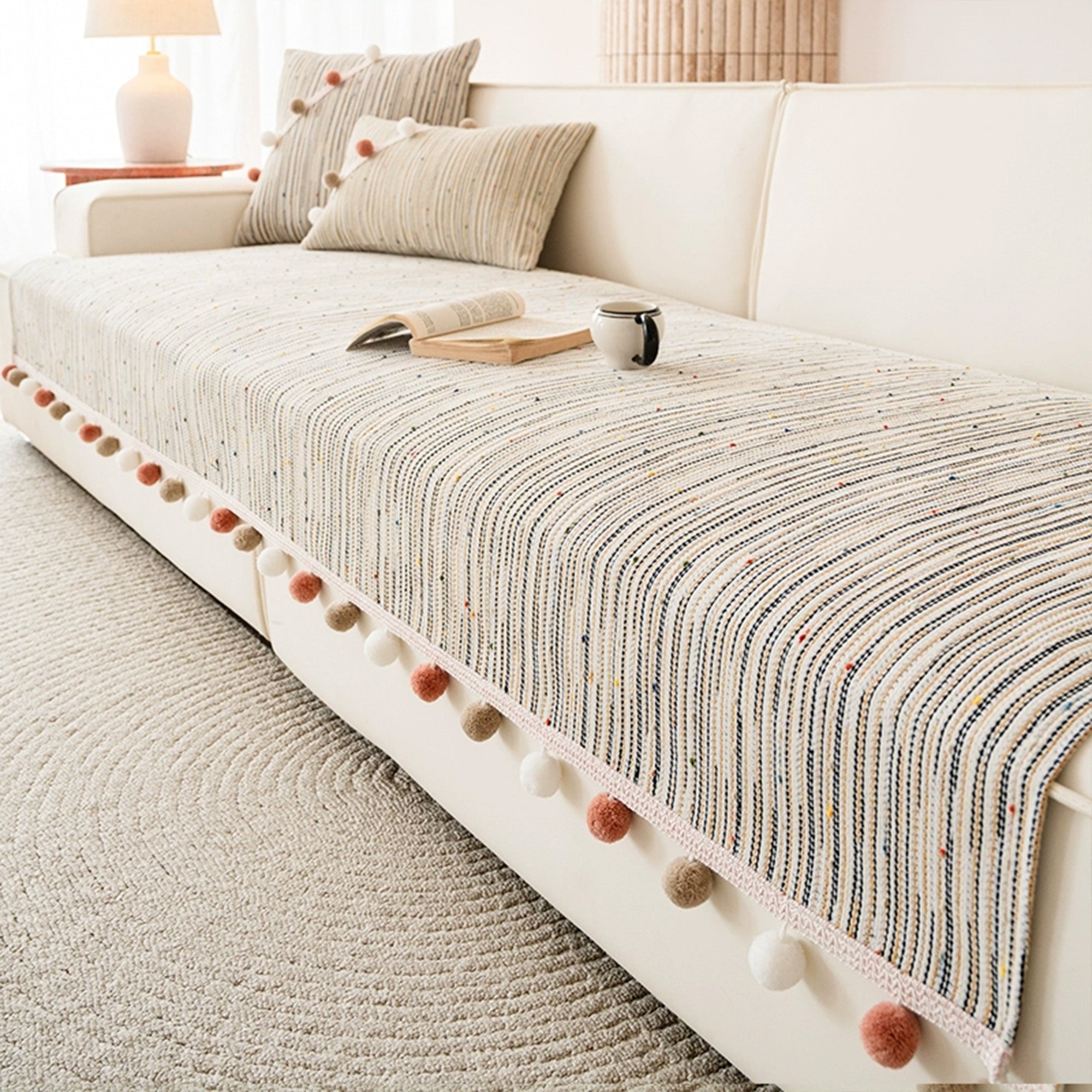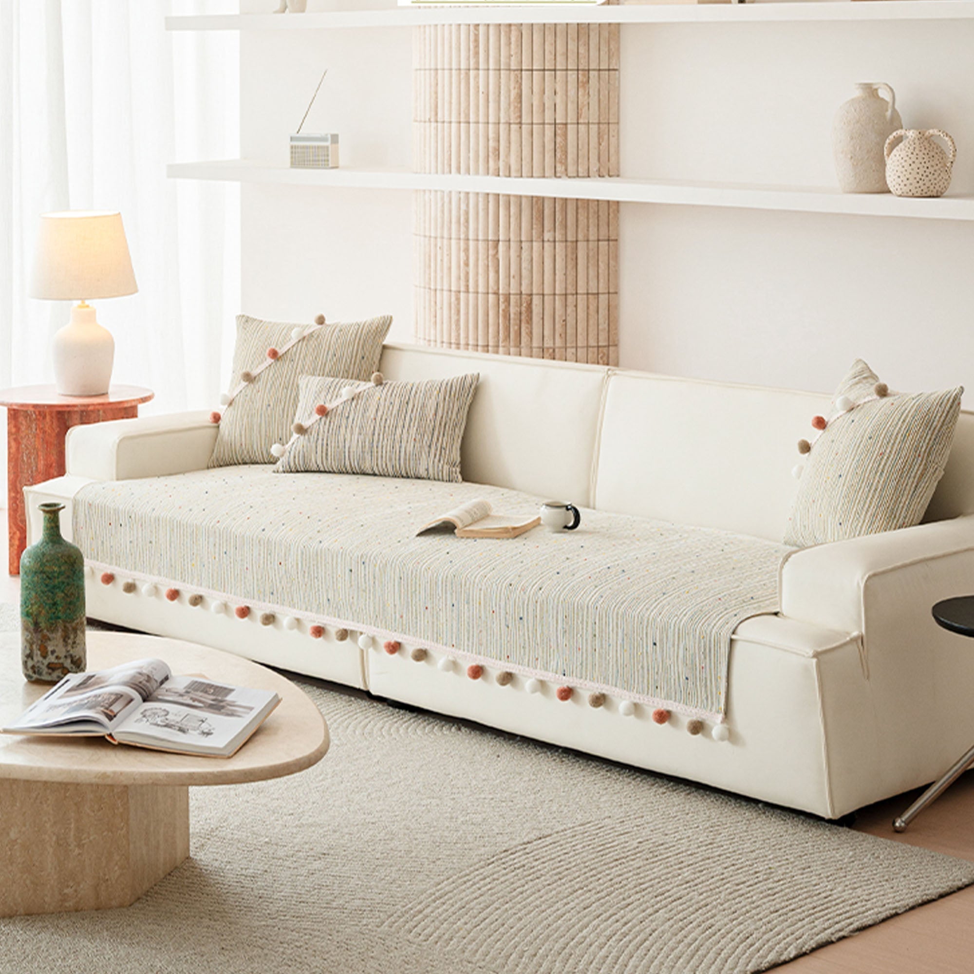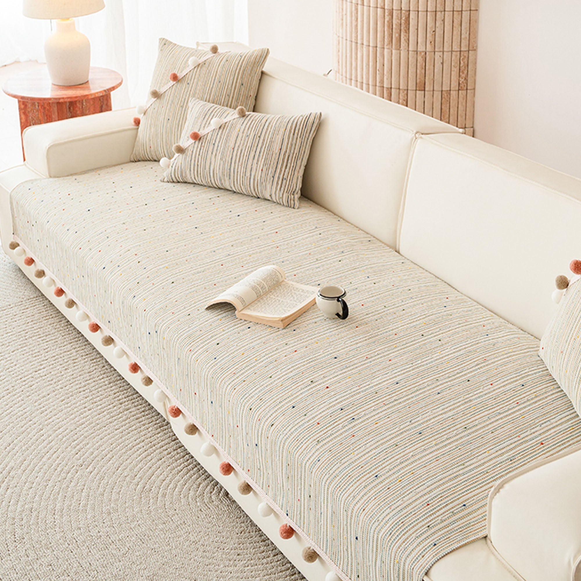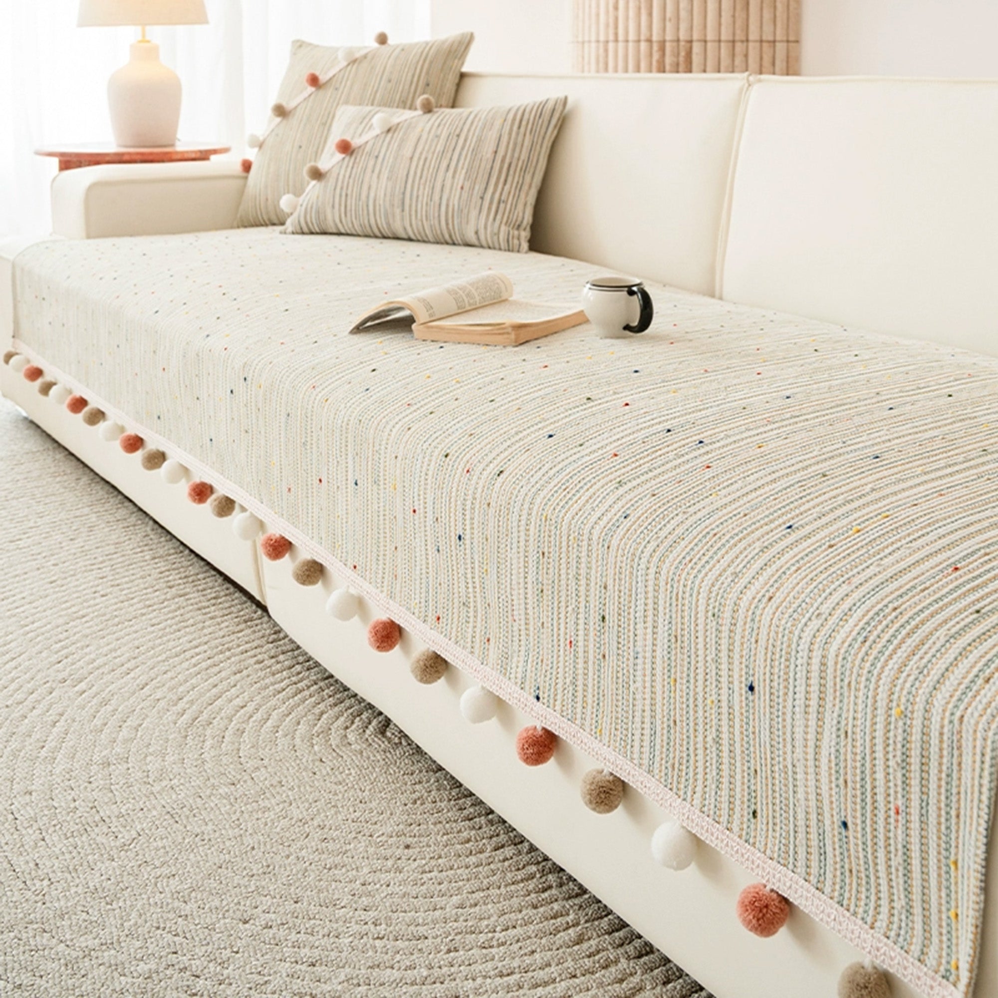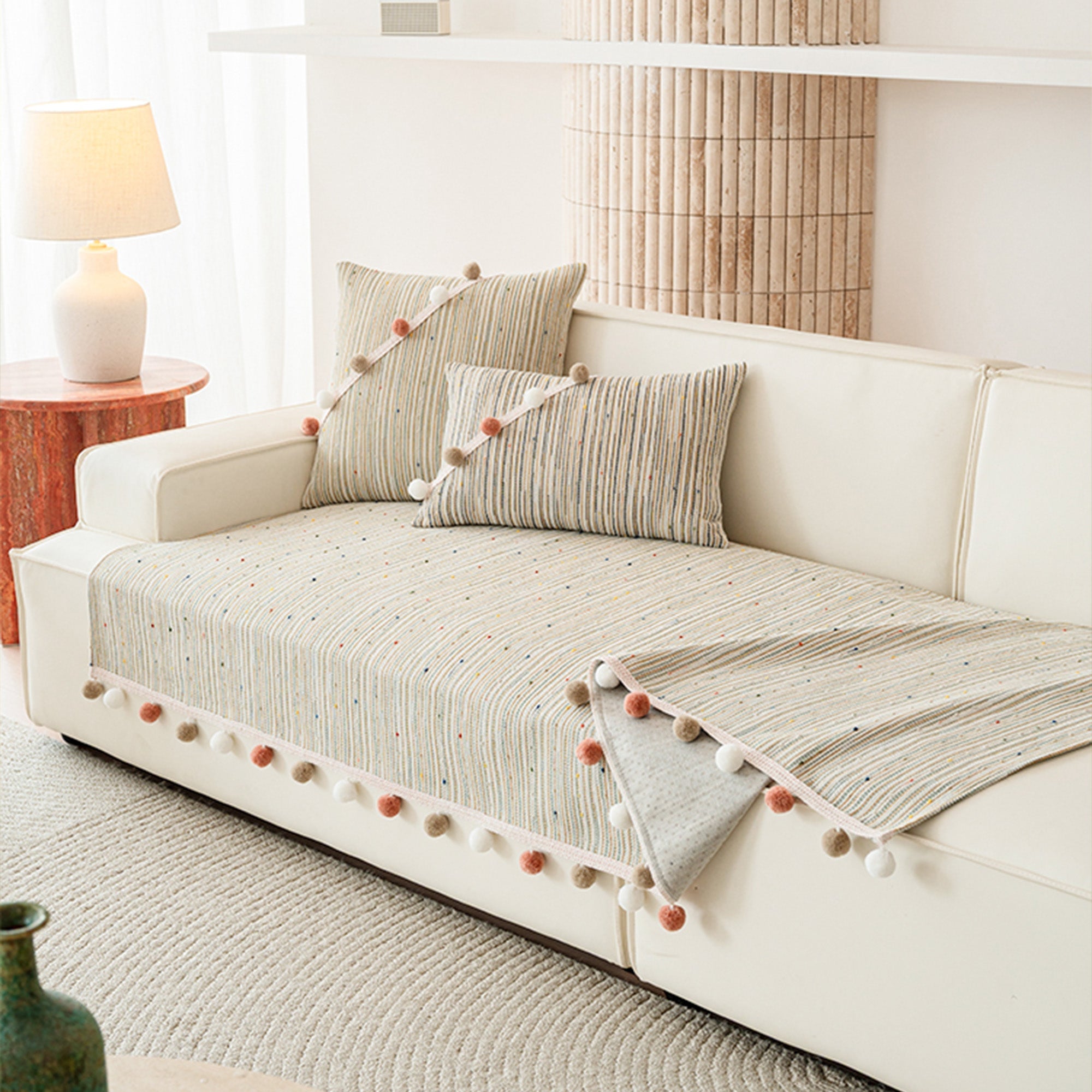 Add a touch of playful elegance and cozy comfort to your home with our Playful Dots Chenille Nonslip Sofa/Couch Cover. Designed with subtle dotted textures and adorned with colorful pom-pom edging, this cover brings cheer and charm to any space while maintaining sophistication. Crafted from durable, pet-friendly chenille fabric, it not only enhances your décor but also ensures reliable protection against daily wear, scratches, and pet fur.