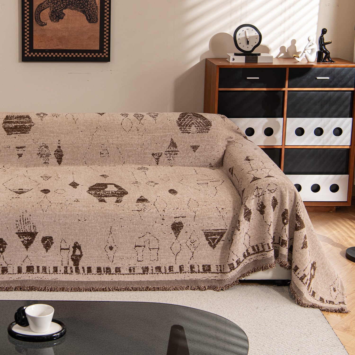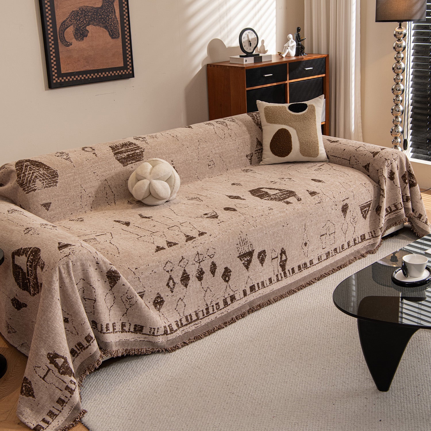 Bring refined elegance and a touch of vintage artistry to your living space with our Vintage Geo Chenille Scratch-Resistant Sofa/Couch Cover. Featuring a beautifully woven geometric pattern inspired by classic retro motifs, this cover adds subtle sophistication and texture to any room.