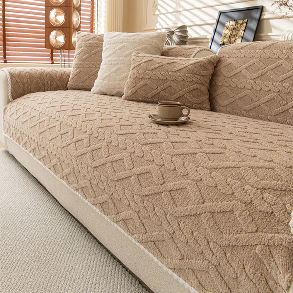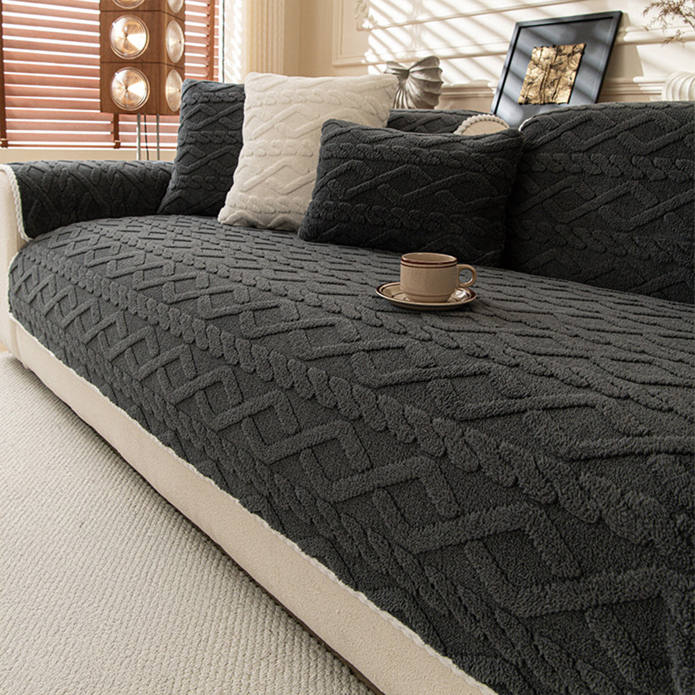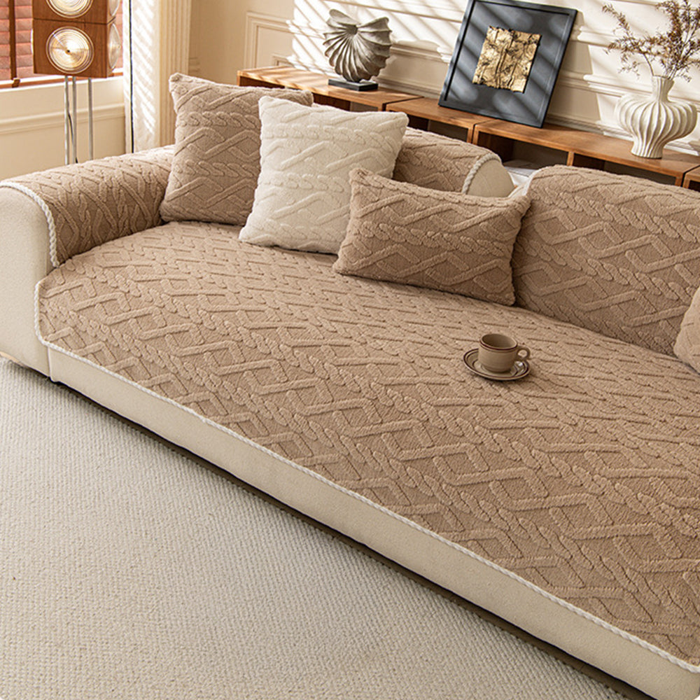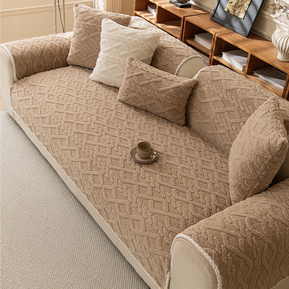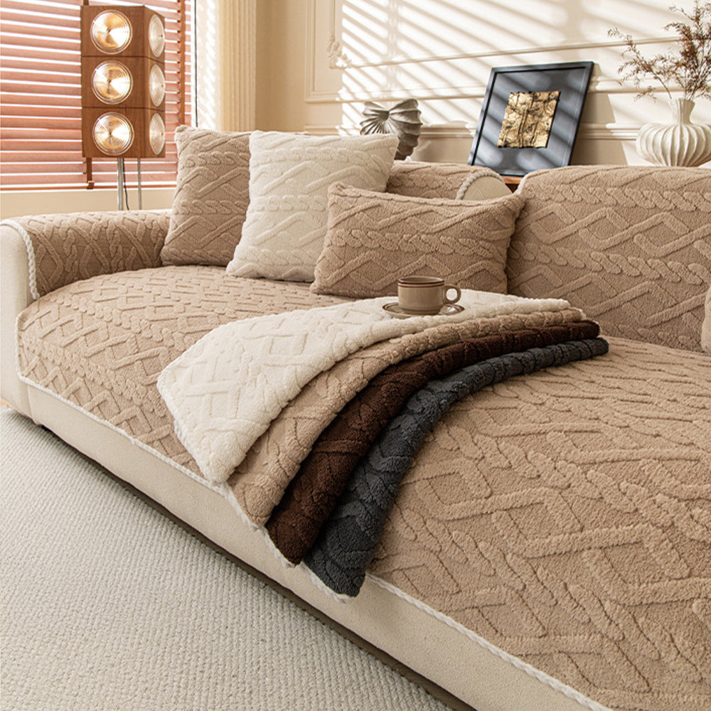 Infuse your home with cozy vintage elegance using our Vintage Weave Plush Nonslip Sofa/Couch Cover. This beautifully textured design features a retro-inspired woven pattern that adds depth and sophistication to your space. Crafted from high-density short plush fabric, it offers luxurious softness and warmth — perfect for autumn and winter comfort. Designed with a secure nonslip backing, it stays firmly in place, even during daily use. The thickened plush material provides protection against spills, pet fur, and scratches, while elevating your décor with a timeless charm.
