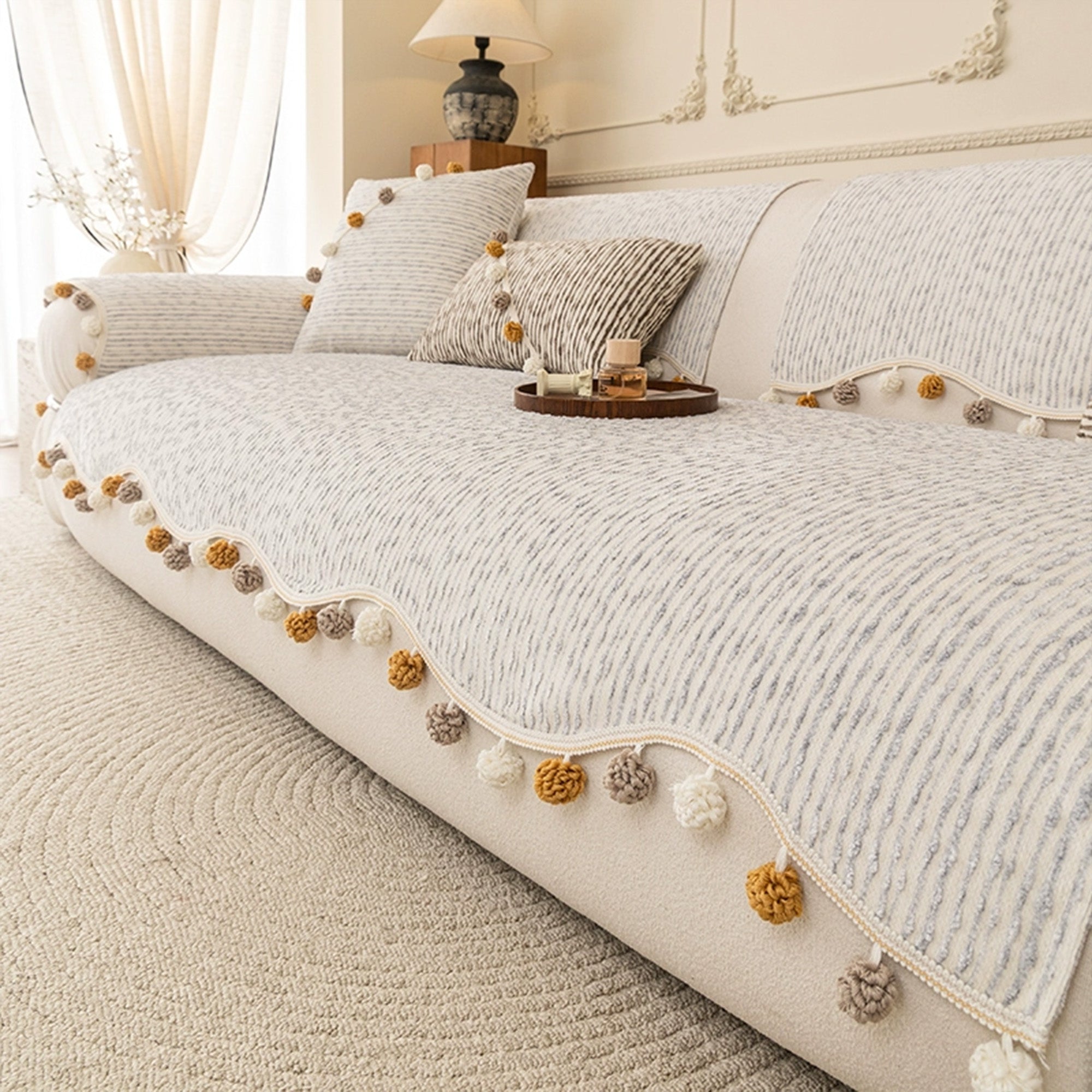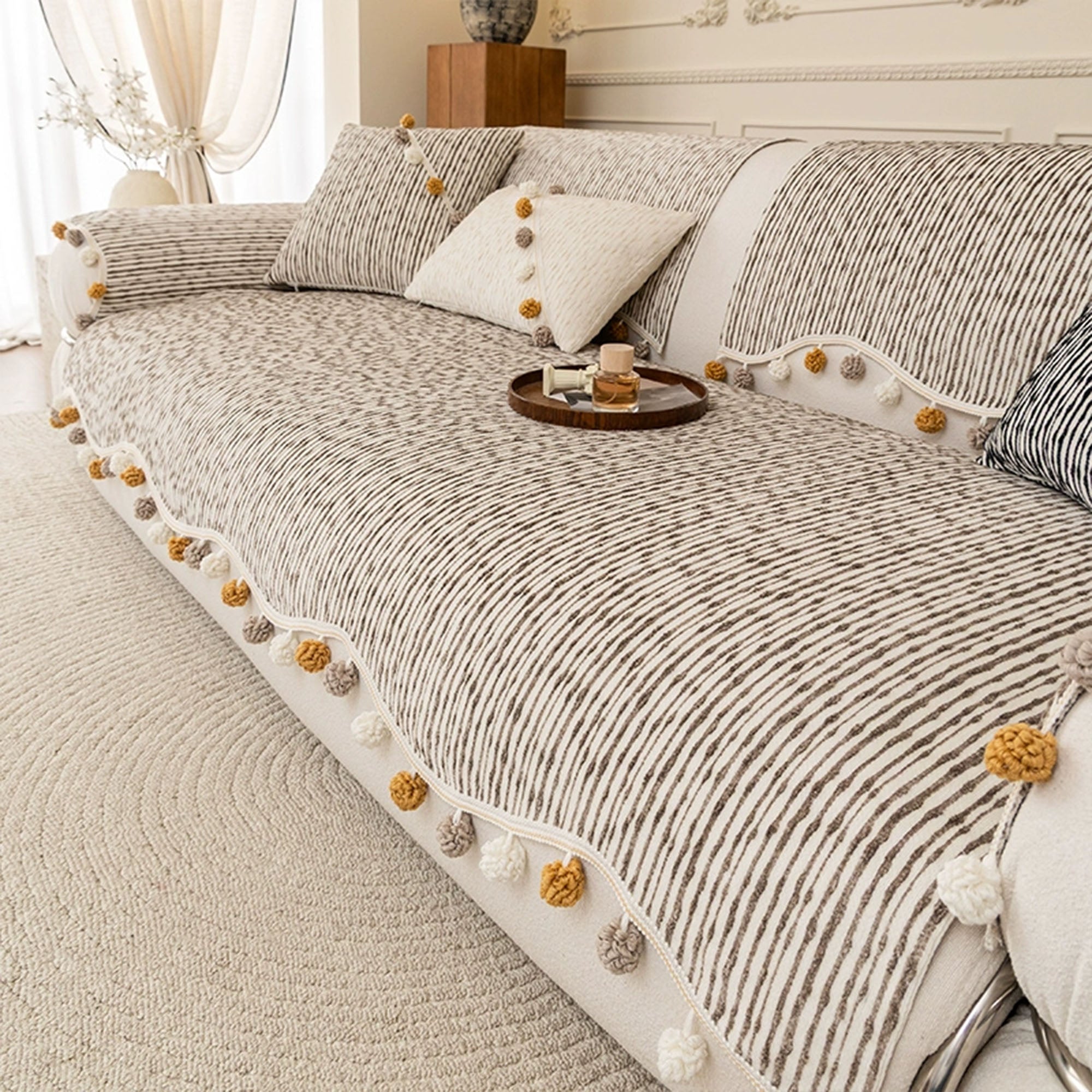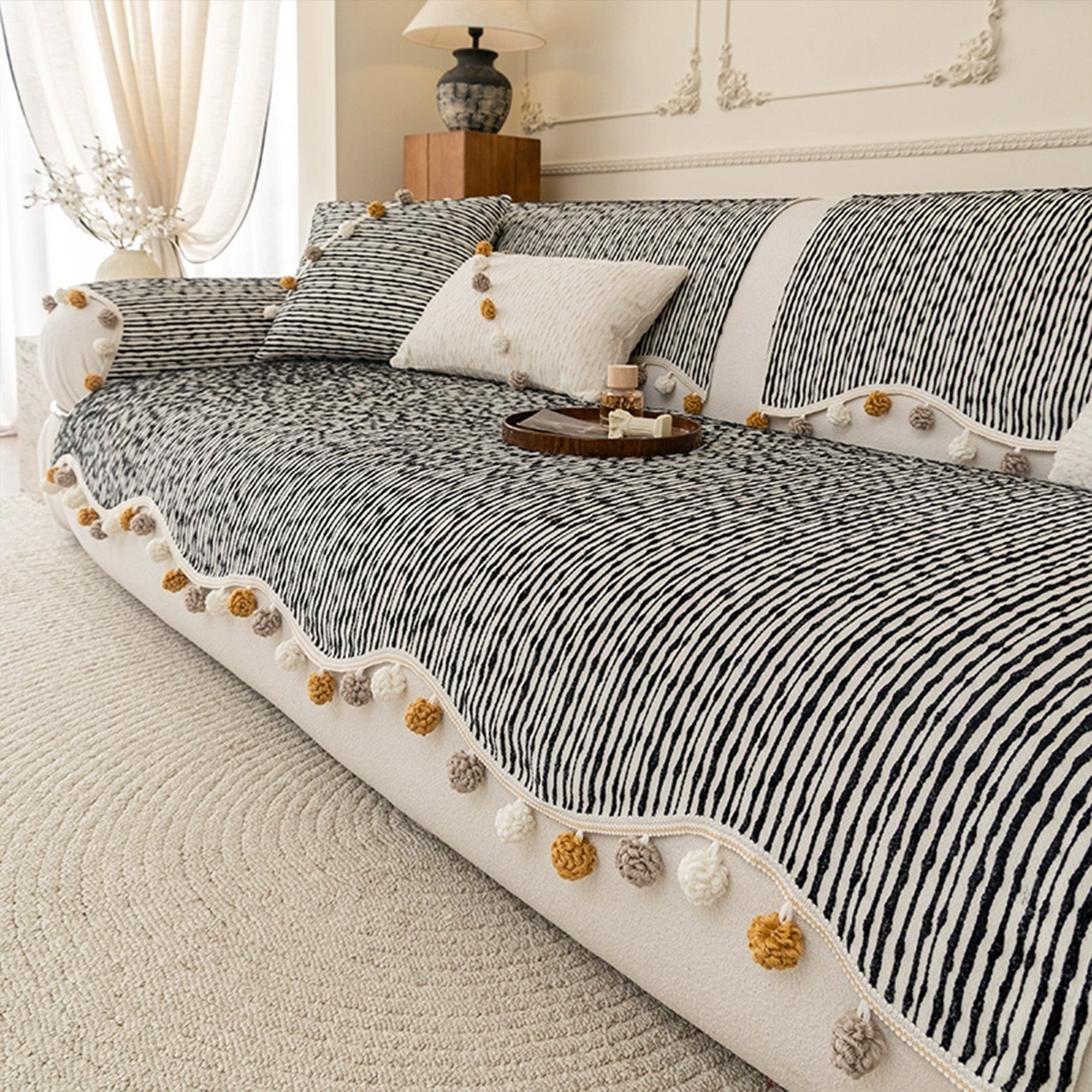 Chic Stripe Pom-Pom Chenille Nonslip Sofa/Couch Cover