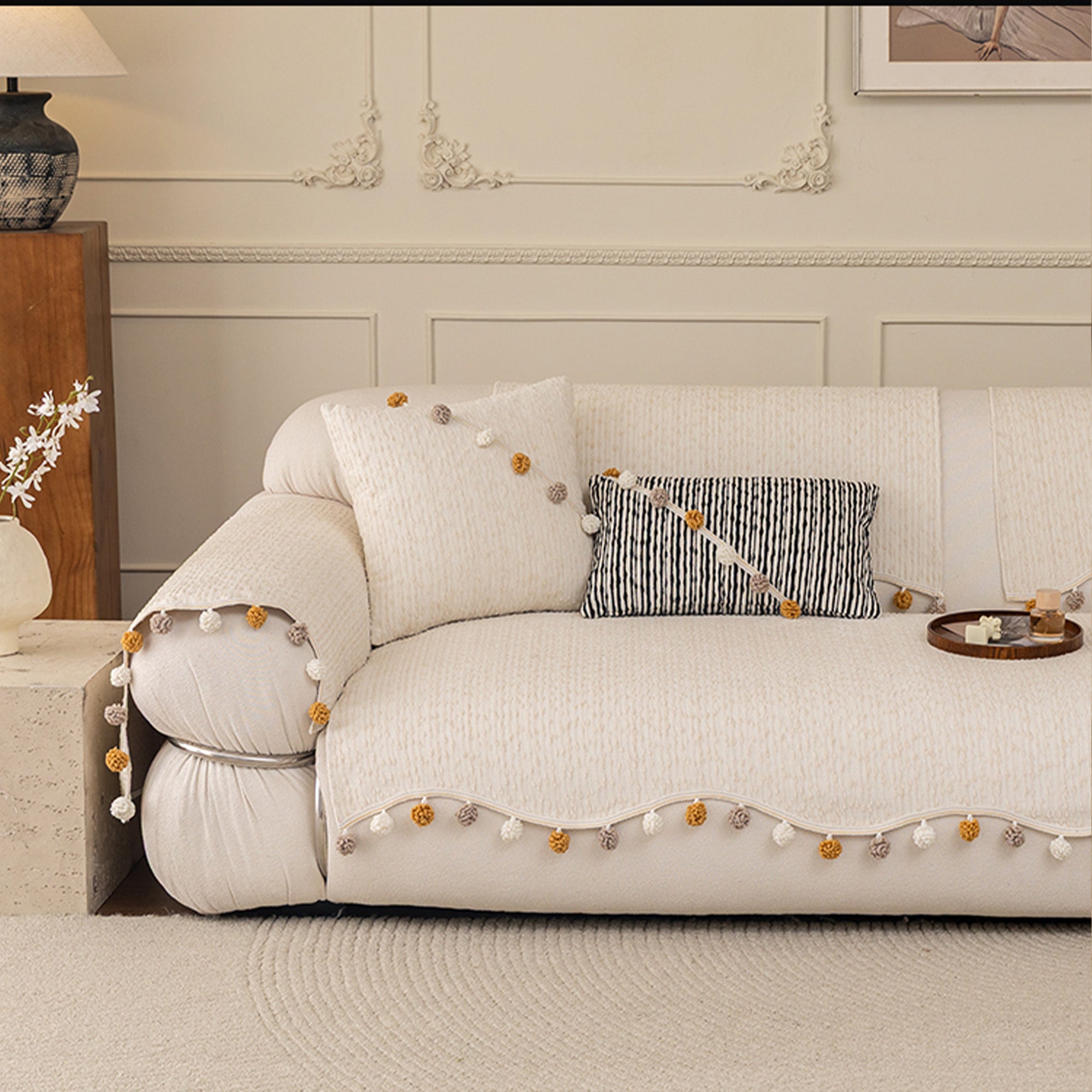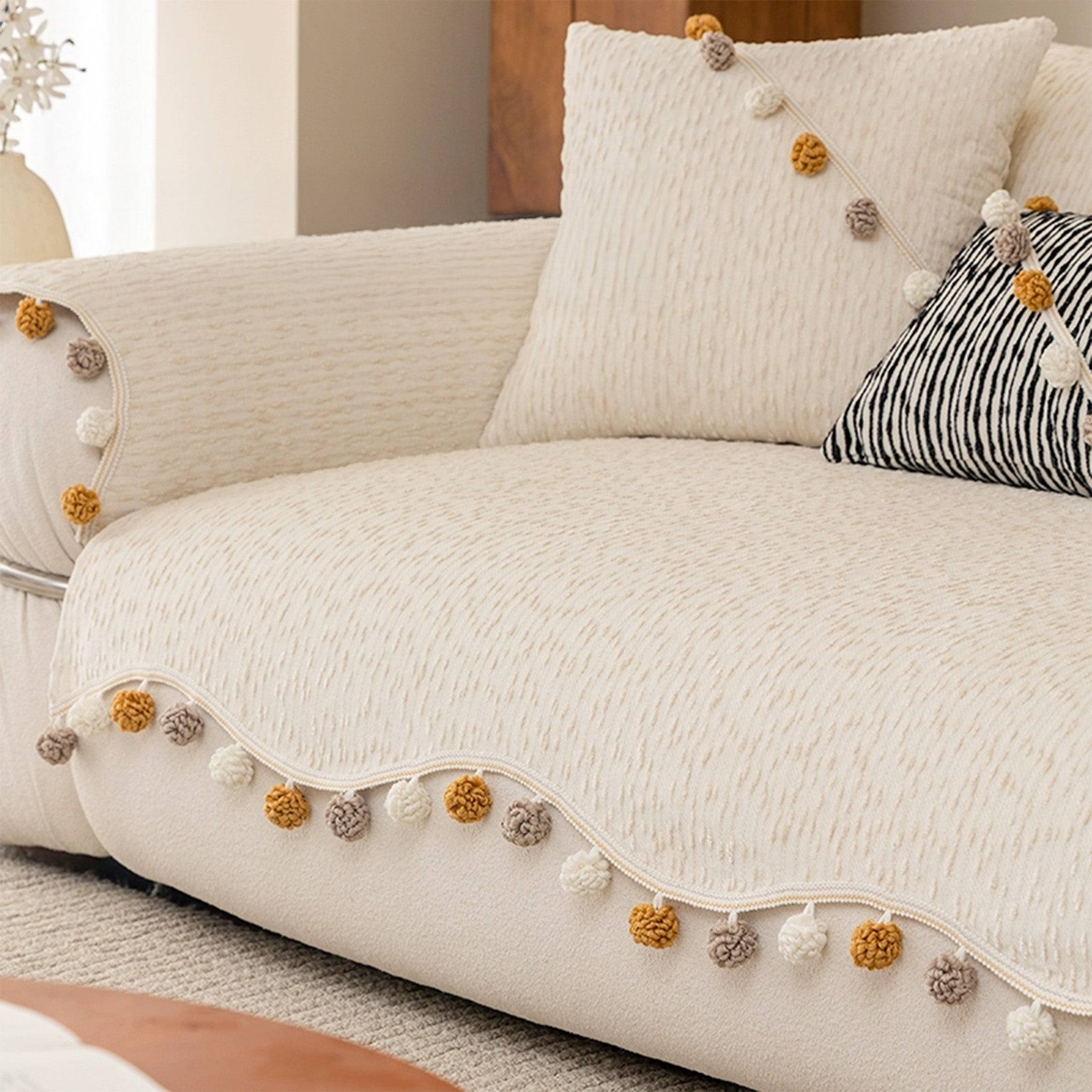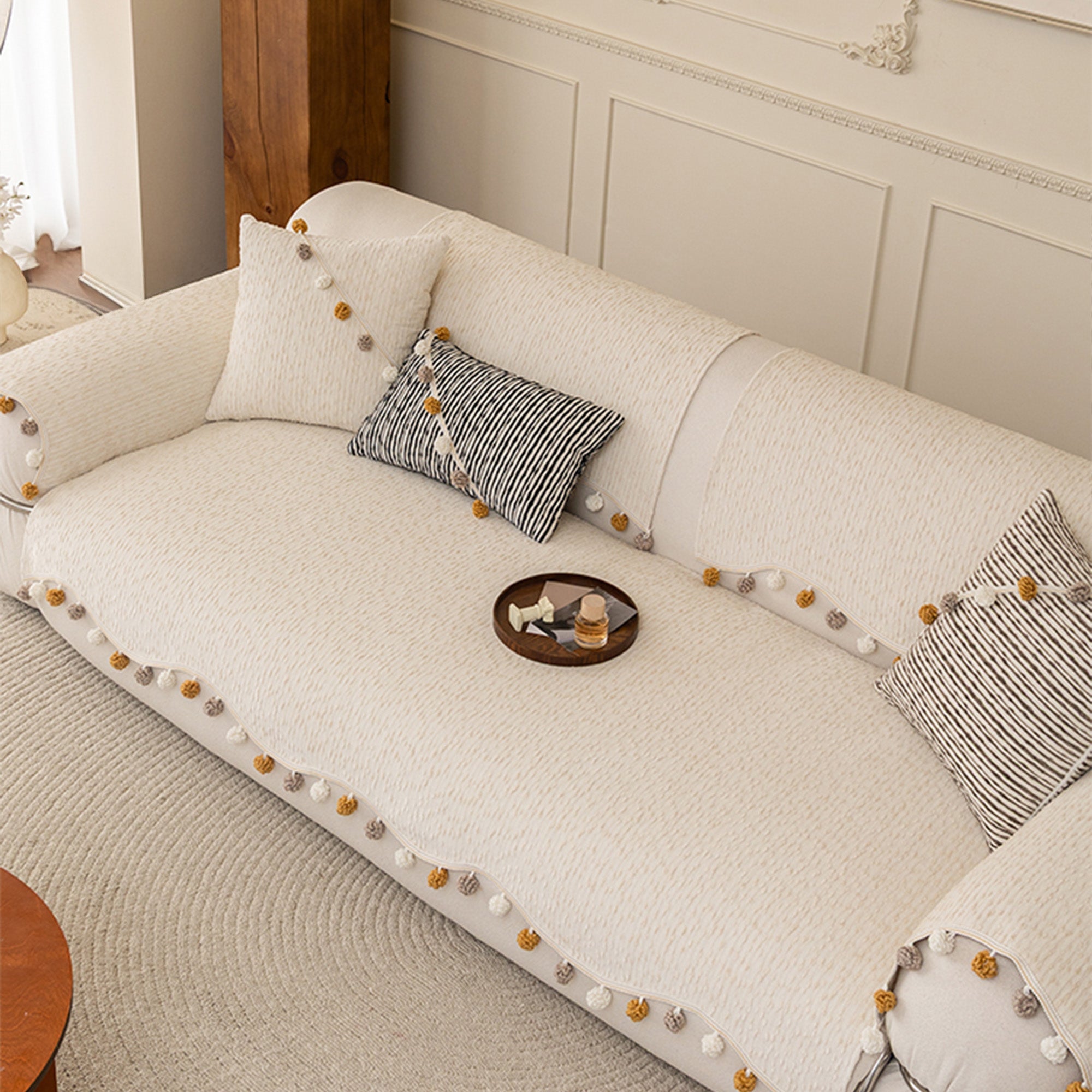 Chic Stripe Pom-Pom Chenille Nonslip Sofa/Couch Cover
