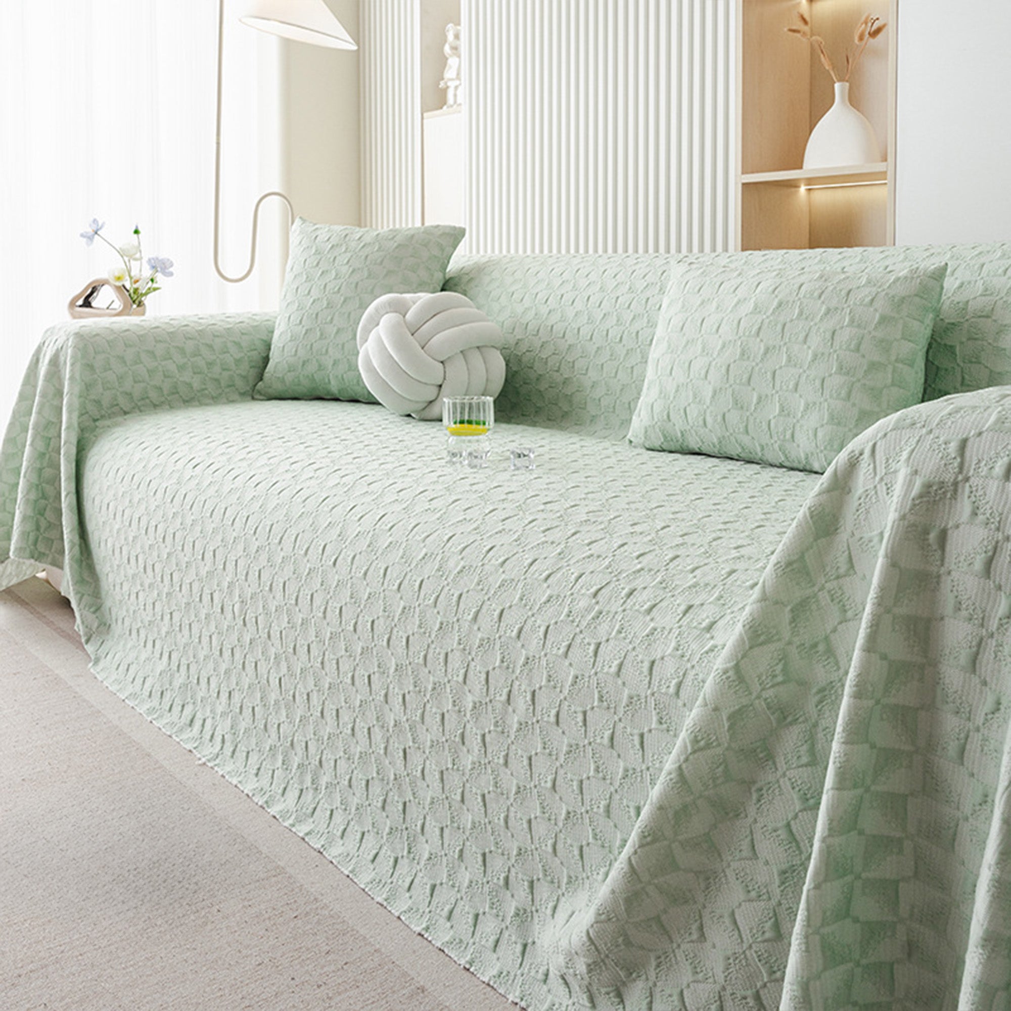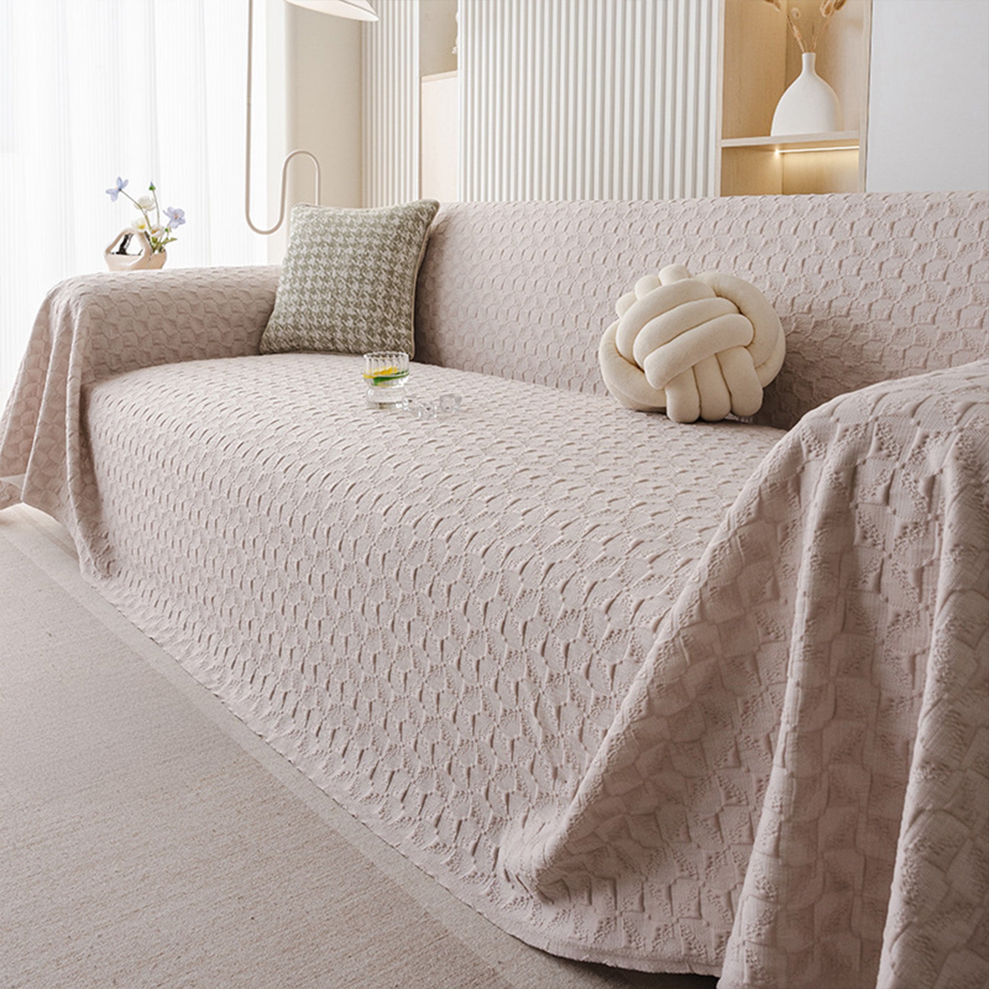 Cooling Modern Woven Textured Soft Pet-Friendly Durable Sofa Cover – Minimalist Hassle-Free Throw Couch Protector