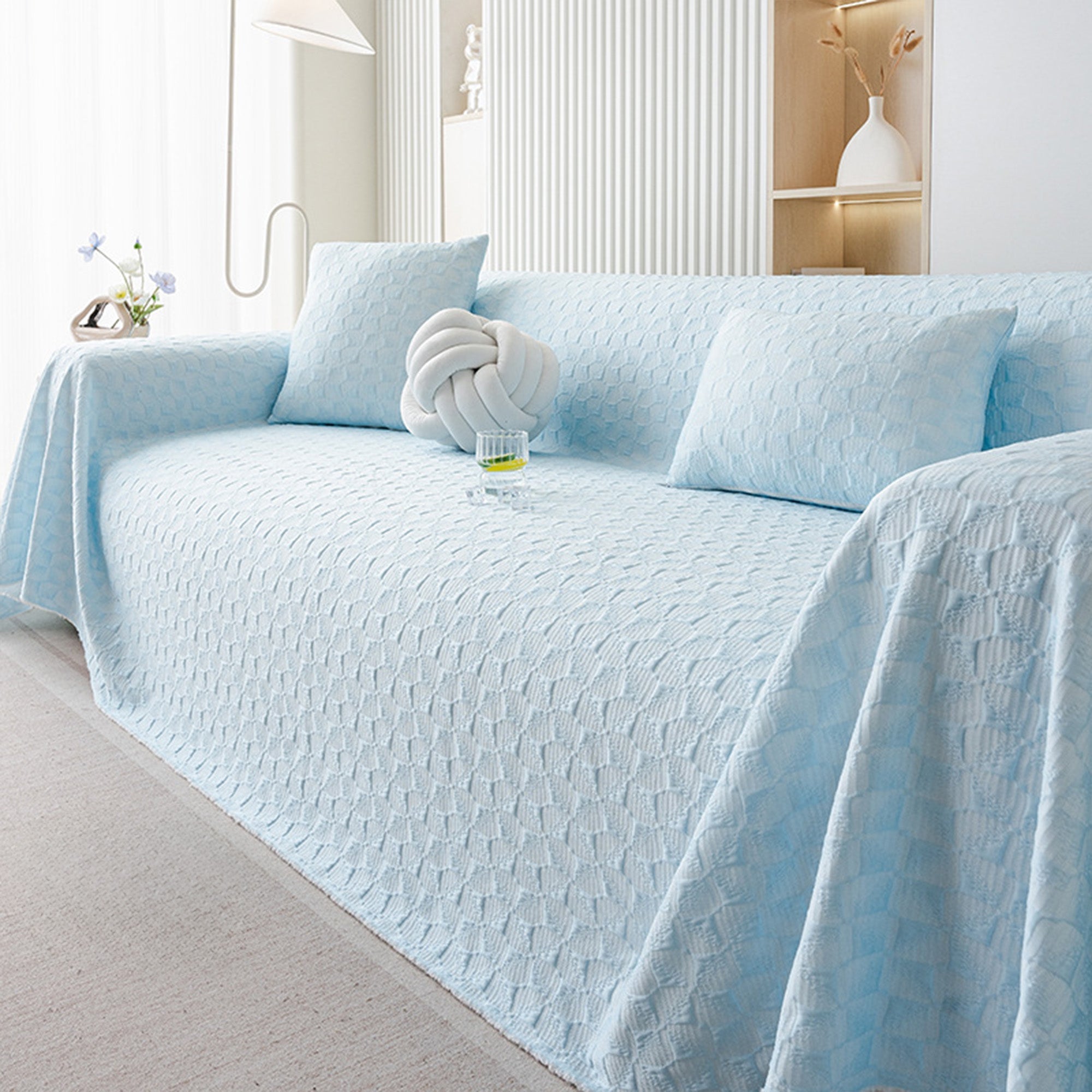Elevate your summer lounging experience with our BreezeWoven Scratch-Resistant Summer Sofa Cover. Crafted from cool-to-the-touch woven fabric, this cover offers a breathable and refreshing upgrade to your sofa, ideal for warmer seasons. The minimalist geometric texture provides a clean, contemporary look while blending seamlessly with your existing décor. Lightweight yet durable, it’s designed to protect your furniture from everyday wear and tear—including scratches, dust, and pet fur—without sacrificing style or comfort.