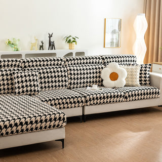 Classic Houndstooth Fleece Stretch Sofa Cover – Anti-Scratch, Full-Cover Pet Protector