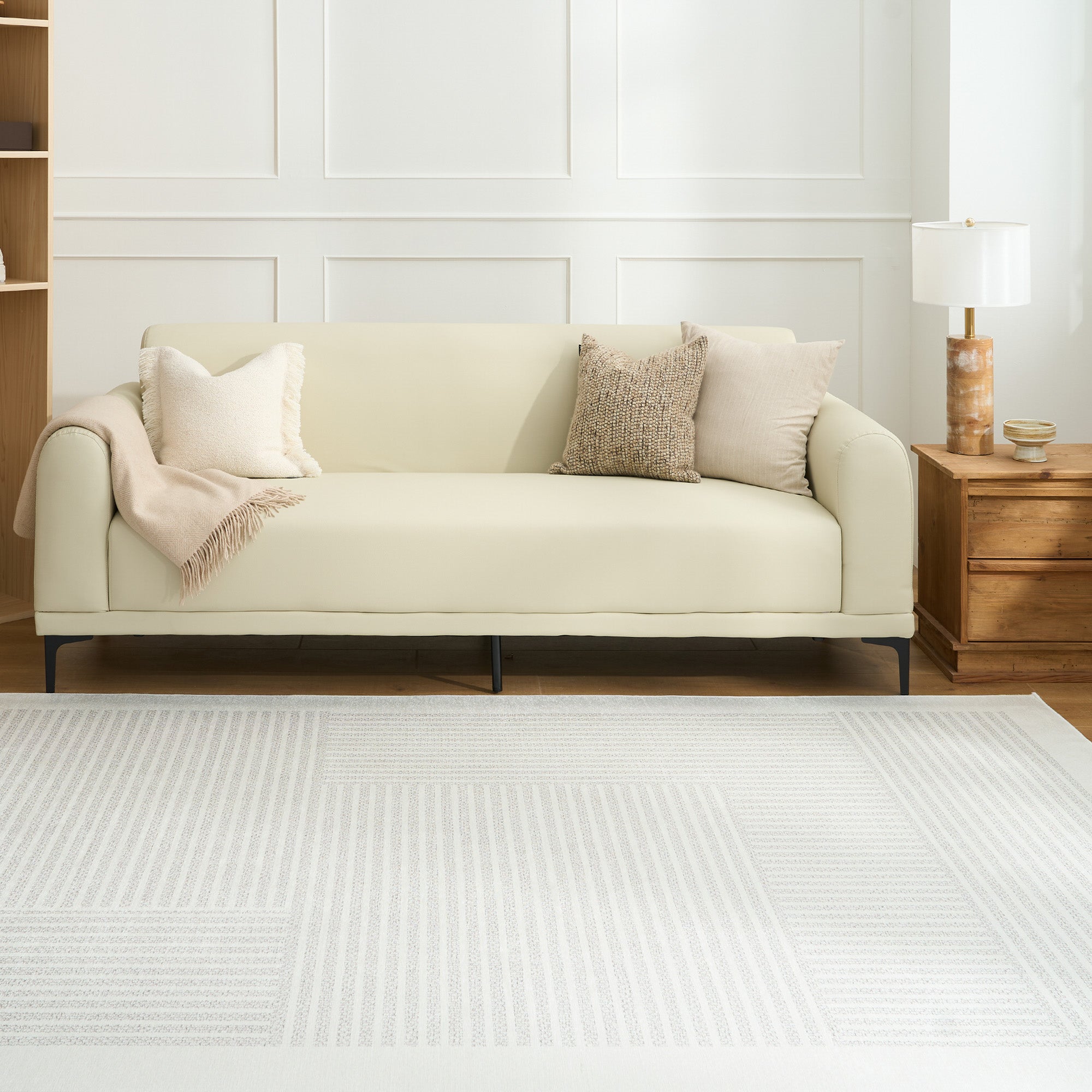 Easy Clean Washable Rug Abstract Textured Stripe Woven Design Durable Spillproof Pet-Friendly Non-Slip Pad Living Room Area Rug