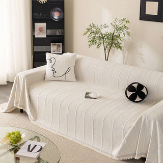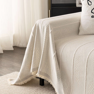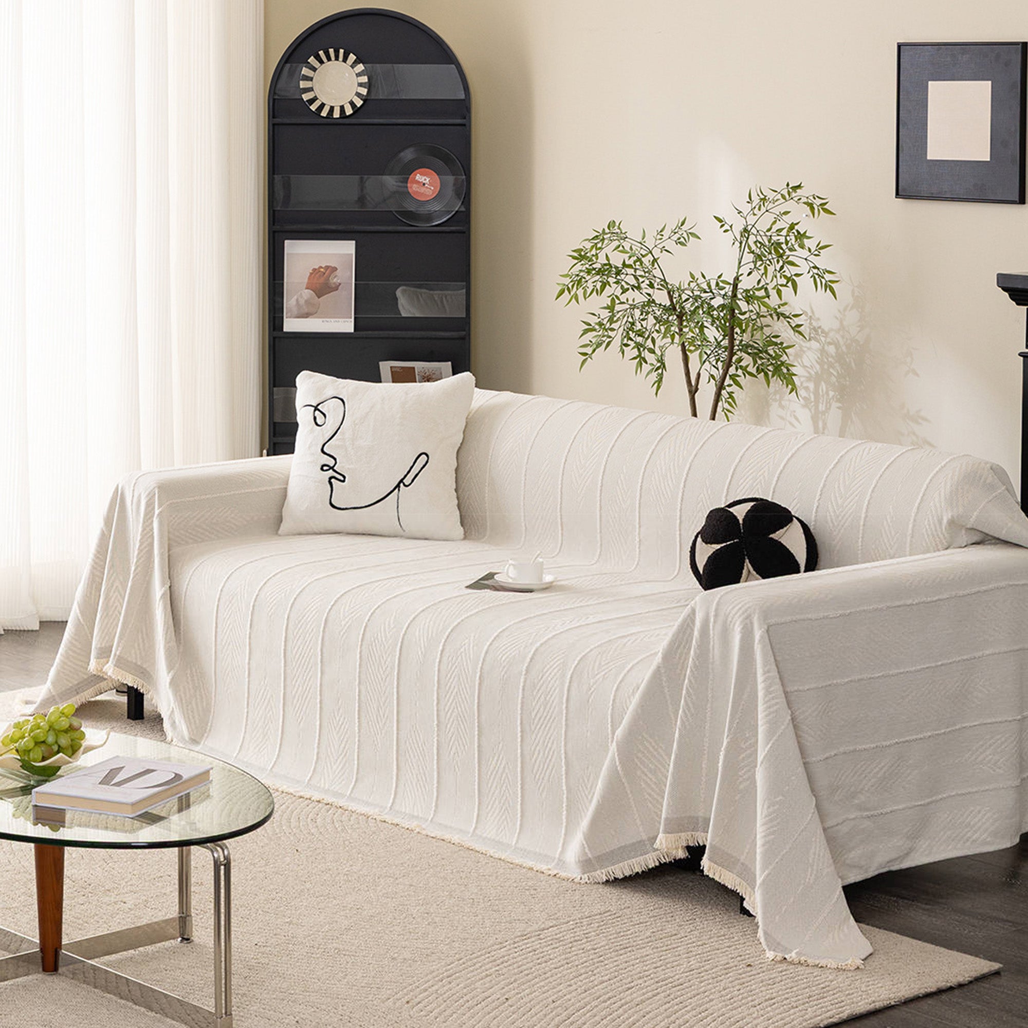 Soft Breathable Herringbone Plush Pet-Friendly Multi-Purpose Minimalist Sofa Cover – Woven Throw Couch Protector