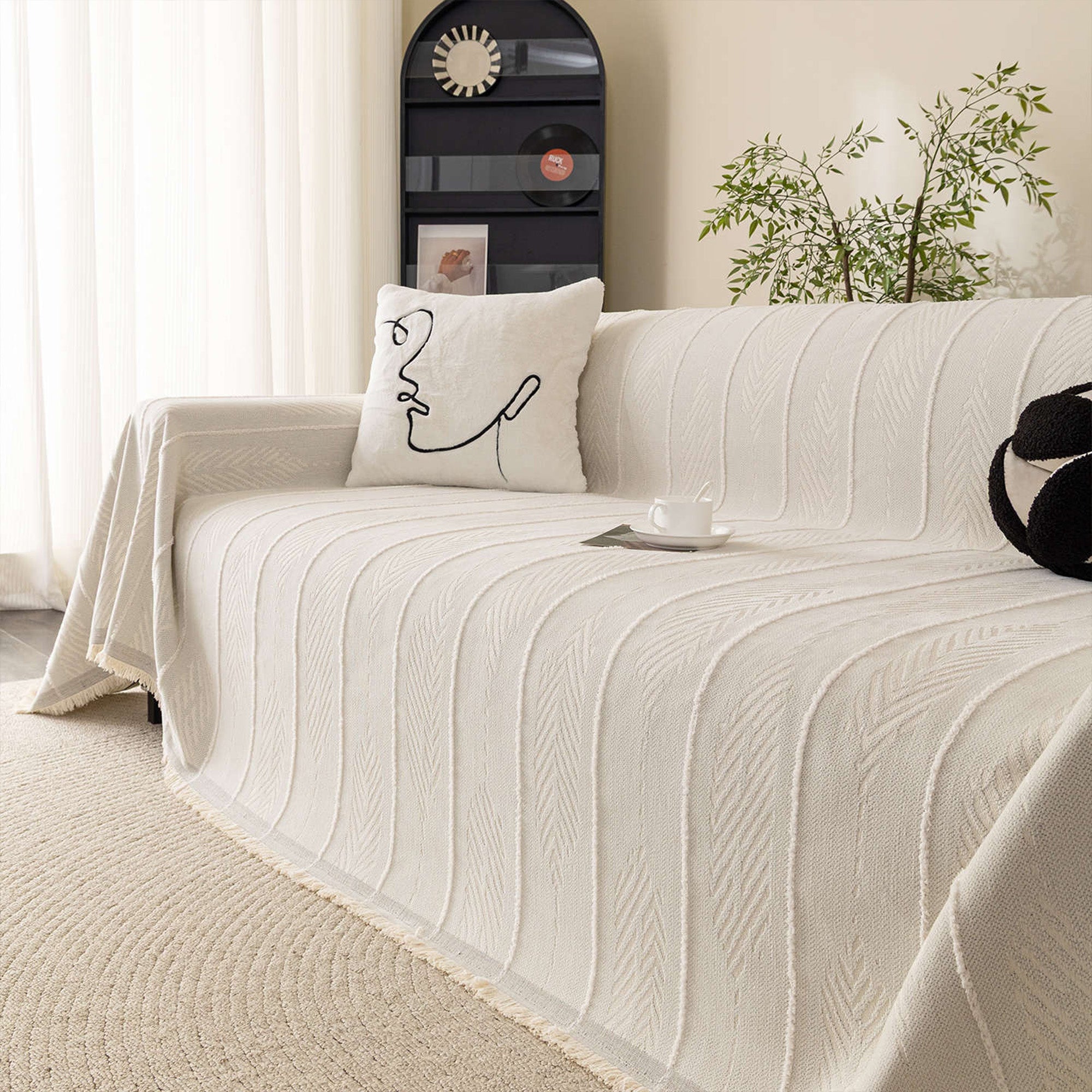 Cooling Modern Woven Textured Soft Pet-Friendly Durable Sofa Cover – Minimalist Hassle-Free Throw Couch Protector
