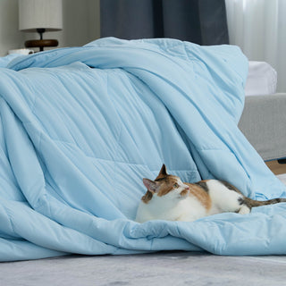 As pet parents, we know the constant battle of finding bedding that keeps you cool at night and handles your fur baby's shedding like a pro. Enter the Super Cooling Comforter 2.0, now with an upgrade that brings you even more instant, long-lasting cooling effects. Imagine staying refreshingly cool throughout the night, thanks to our advanced fabric that works its magic without any chemicals. Plus, its pet hair repellent powers ensure a spotless, fur-free sleep zone. Bid farewell to restless nights and embrace a luxurious, pet-friendly sleep experience!