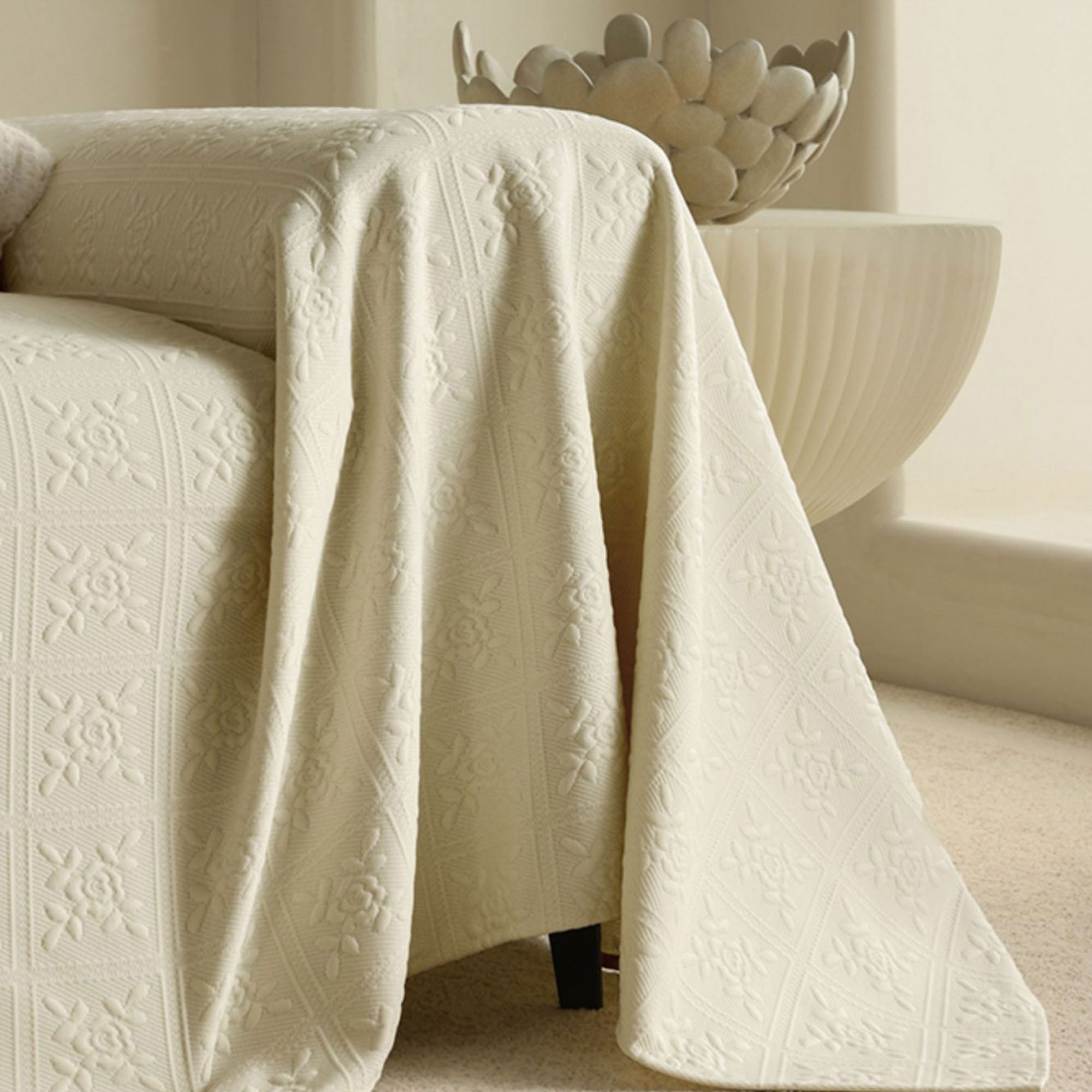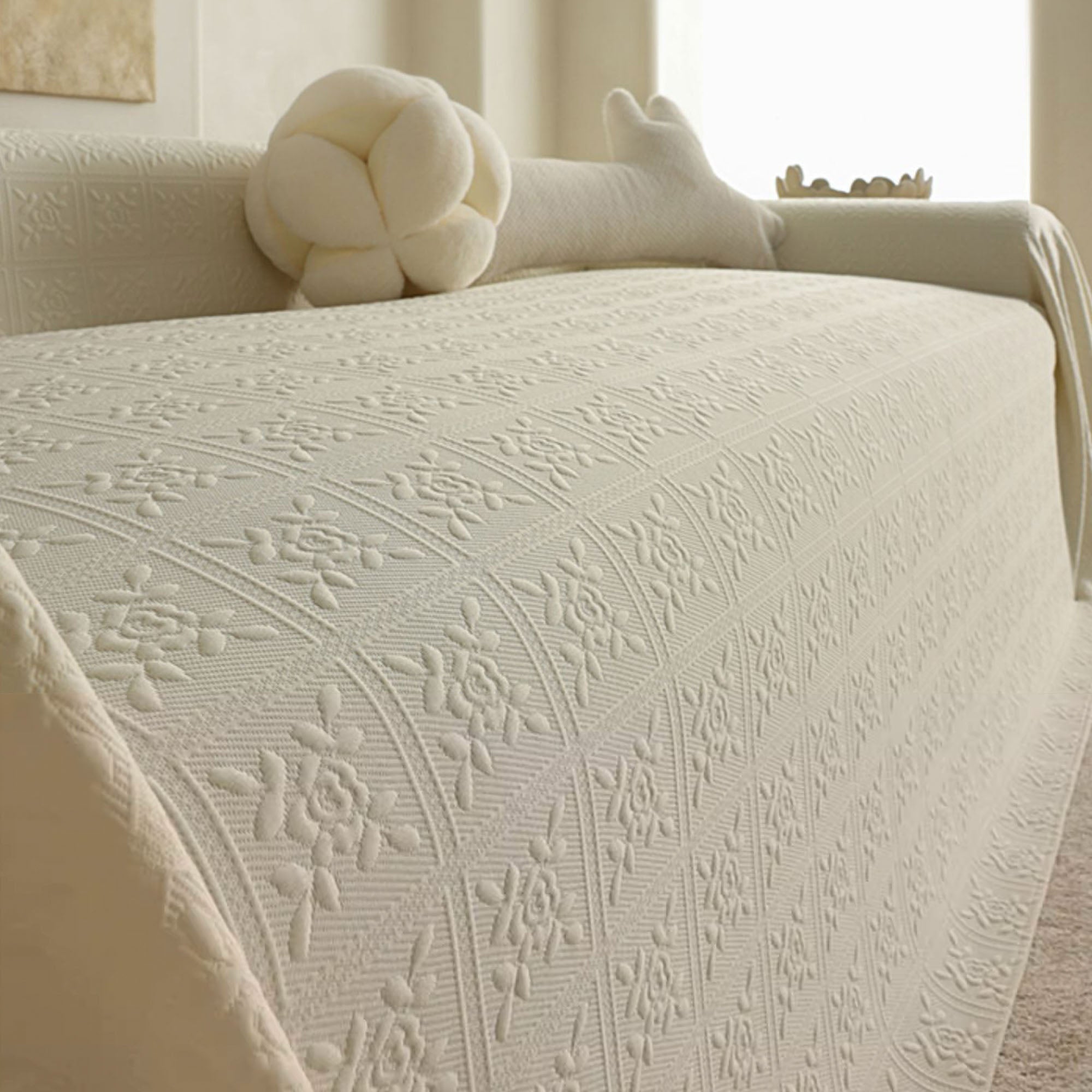 Wrap your living space in quiet elegance with our Whisper Bloom Blended Sofa Cover. Made from a premium blend of cotton and polyester, this cover features a beautifully embossed floral design that brings a subtle sophistication to any room. Its soft, creamy hue pairs effortlessly with minimalist or romantic interiors.