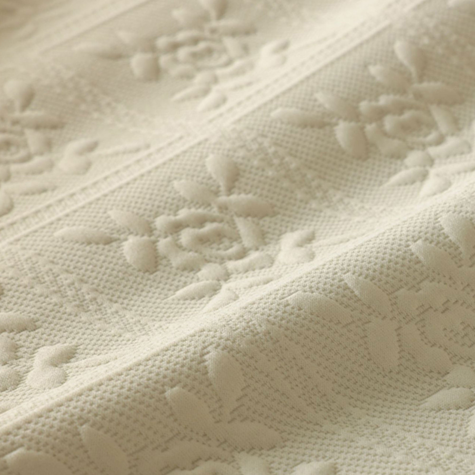 • Textured floral embossing on a smooth blended fabric—gentle yet durable.