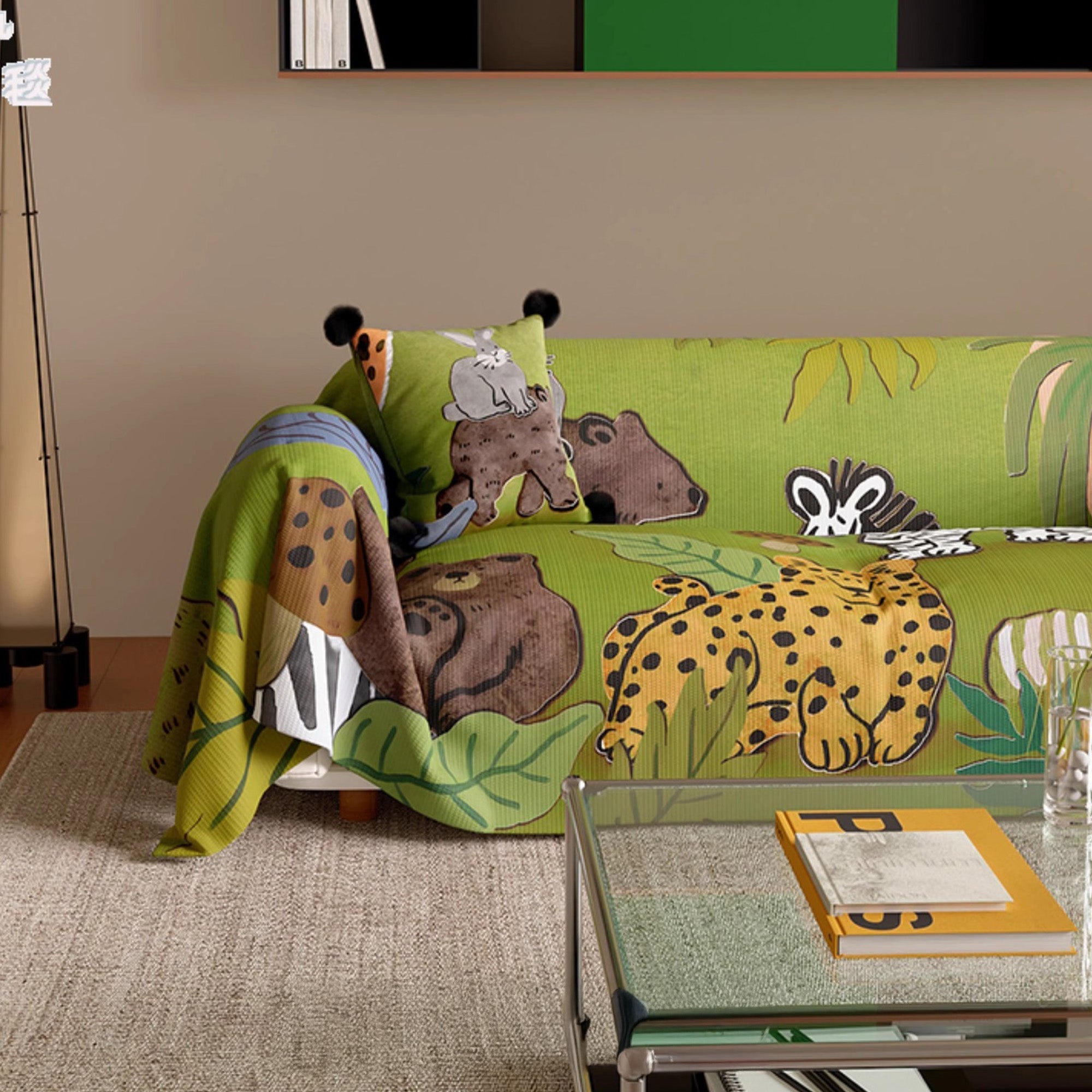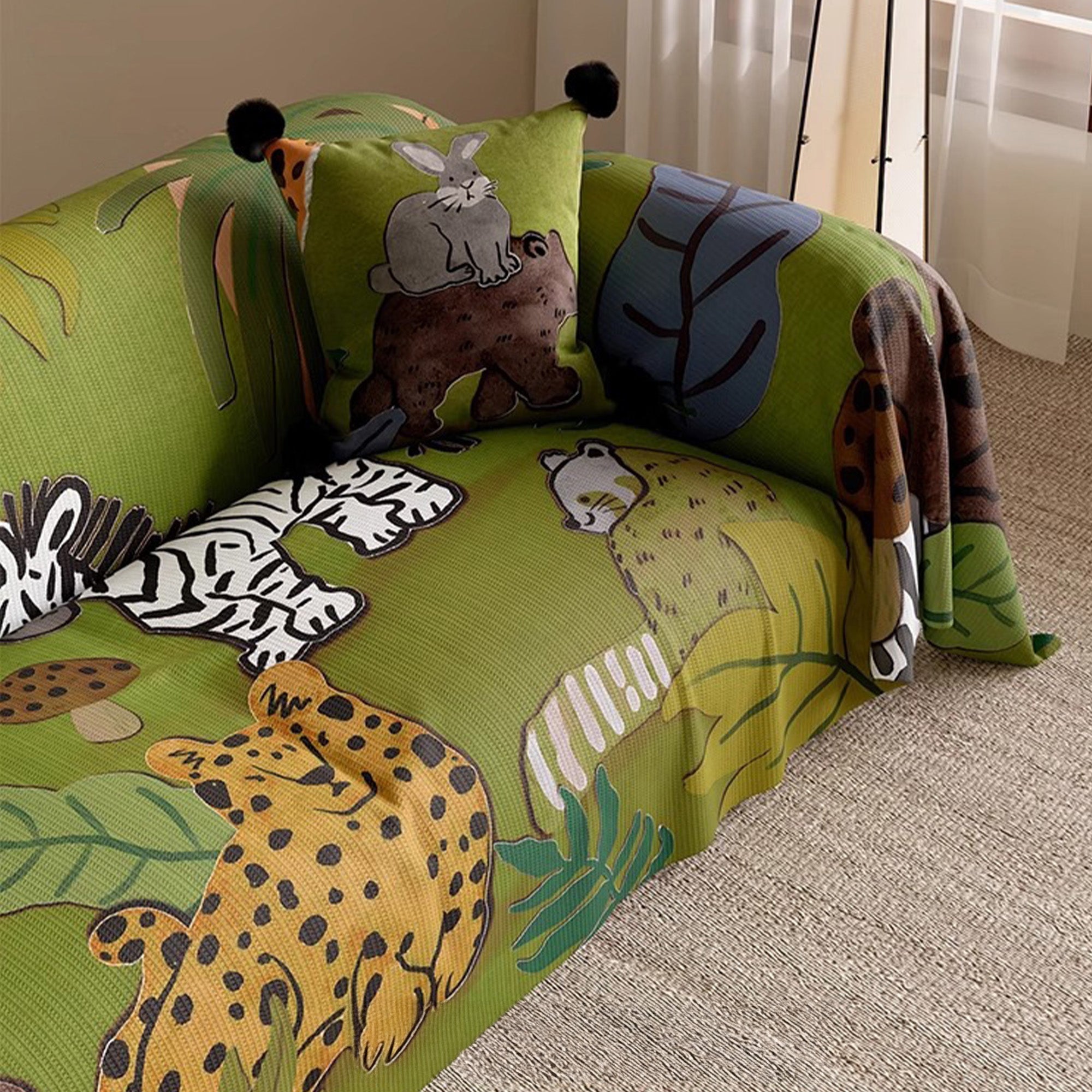 Bring playfulness and imagination into your living room with the WildTale Safari Breezy Sofa Cover — a cheerful, one-piece slipcover designed for effortless draping and daily ease. With vibrant animal illustrations and tropical tones, it's perfect for households with kids, pets, or anyone young at heart.